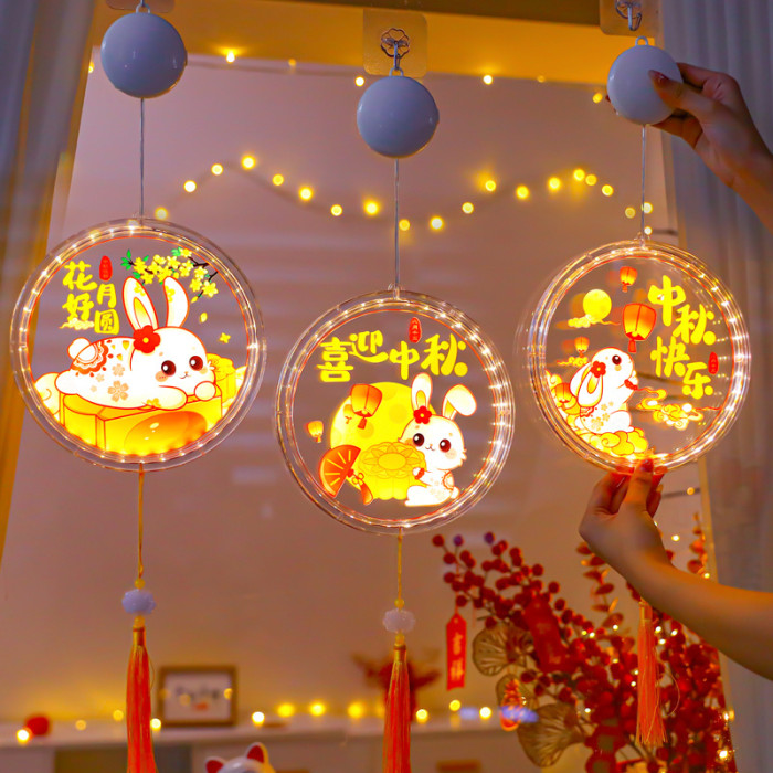 發光中秋快樂玉兔子掛飾節日氛圍窗戶裝飾場地布置道具用品掛件