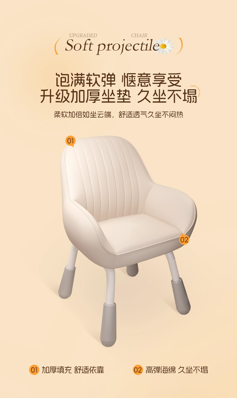 【可升降四腳-360°旋轉款】耐磨貓爪皮-米白+高彈海綿