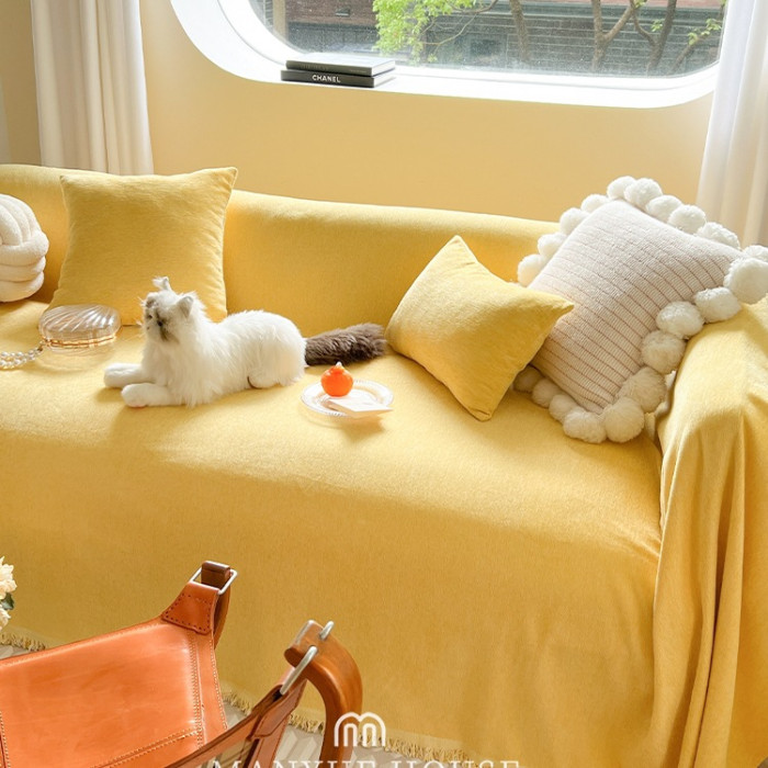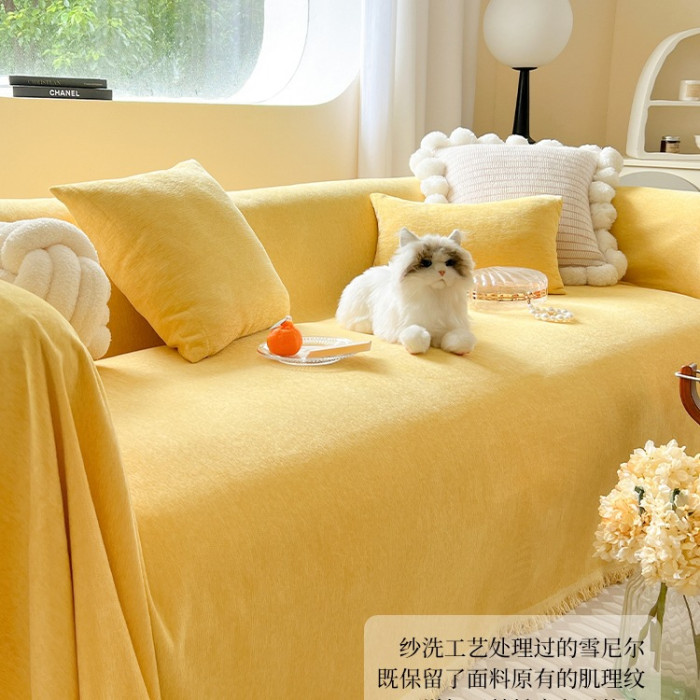 蔓越家 ins奶油風雪尼爾沙發巾全包一片式蓋布沙發套沙發蓋巾坐墊