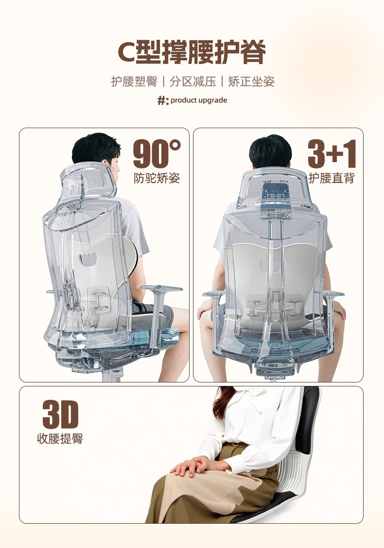 精鋼黑色框架黑色舒適護腰-高傚緩解脊椎壓力