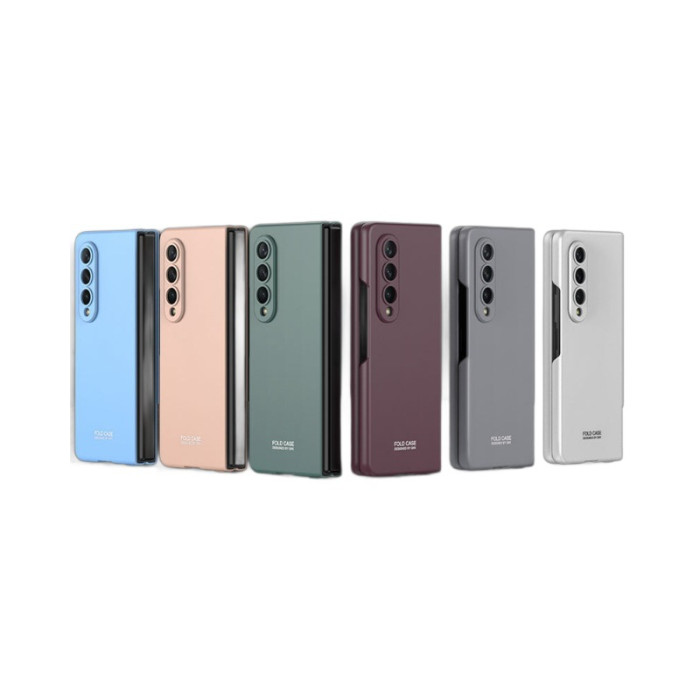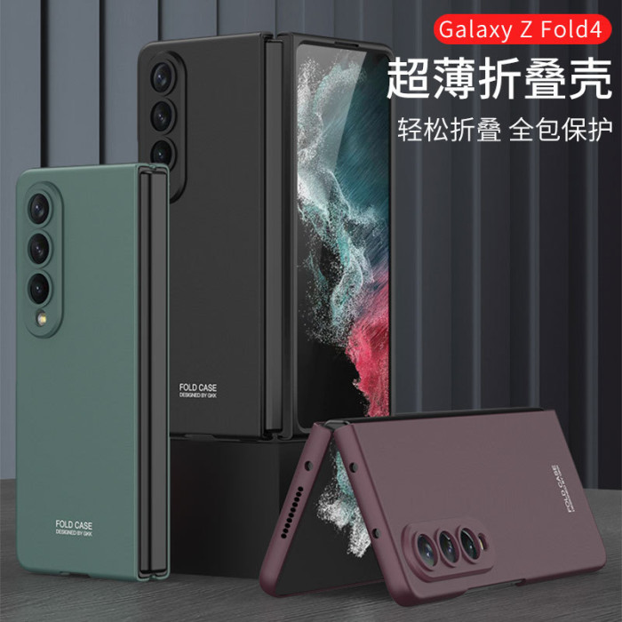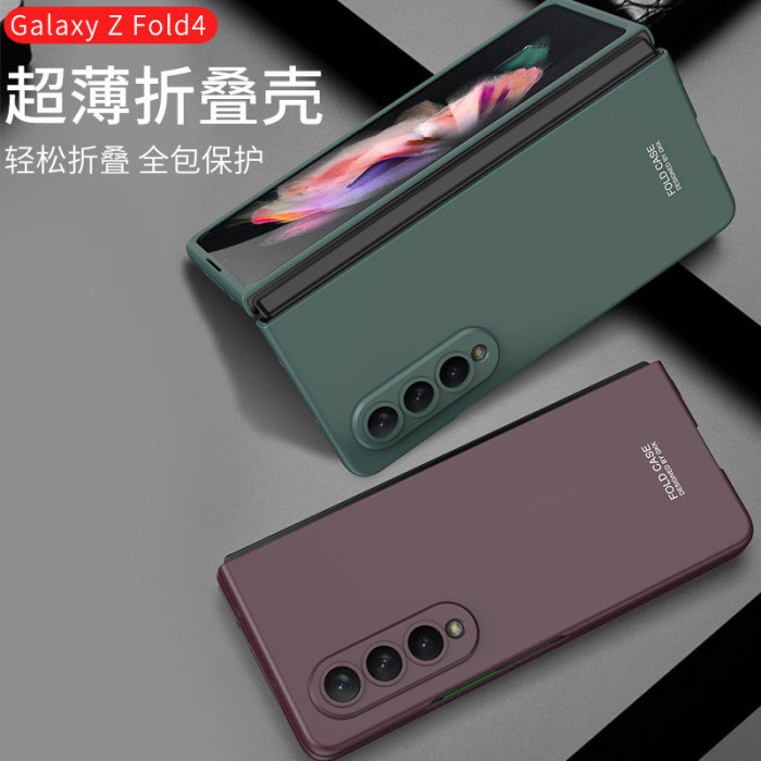 適用三星Fold4手機殼超薄精孔簡約純色pc磨砂摺疊螢幕防摔外殼fold4
