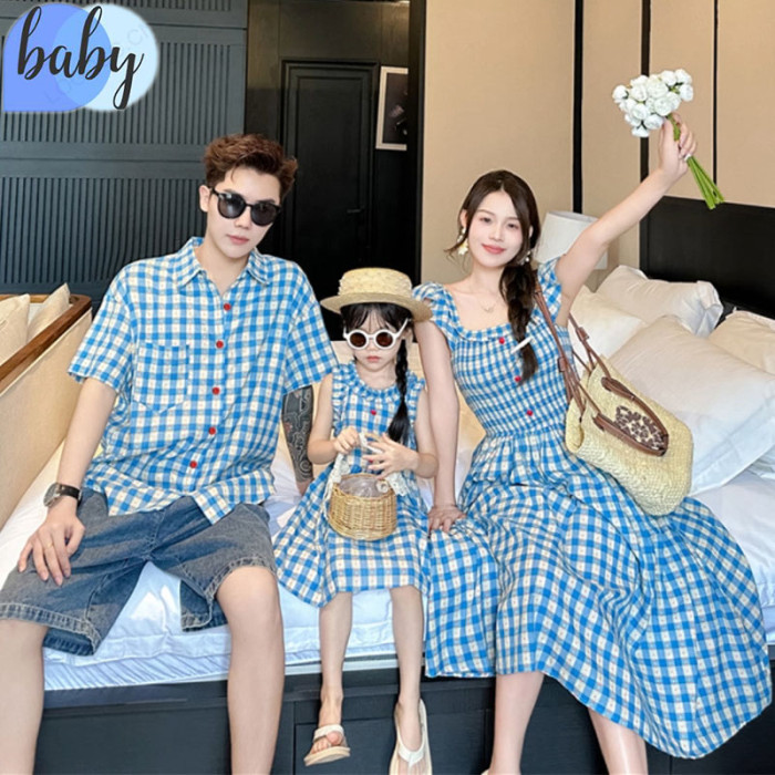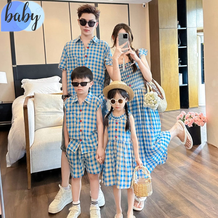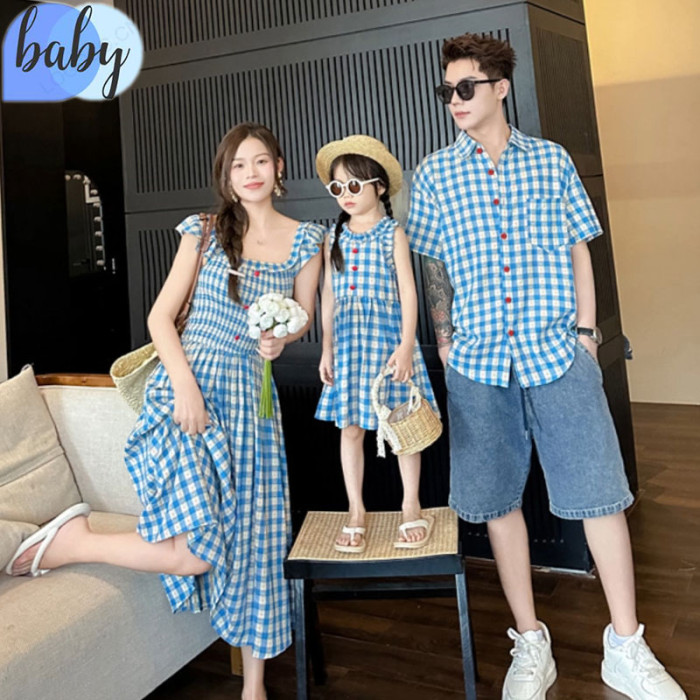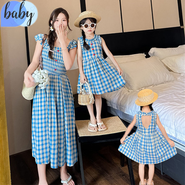 高級感親子裝韓系浪漫氣質格子母女花邊連衣裙夏季氣質度假風裙子