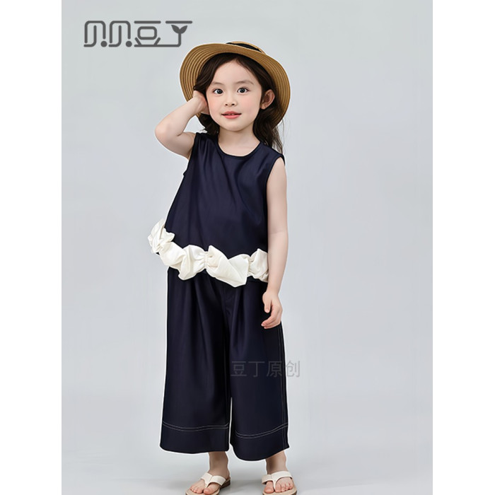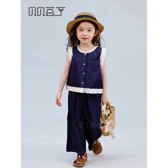 親子裝母女款2025新款夏季炸街輕薄高級感天絲牛仔兩件套女童套裝
