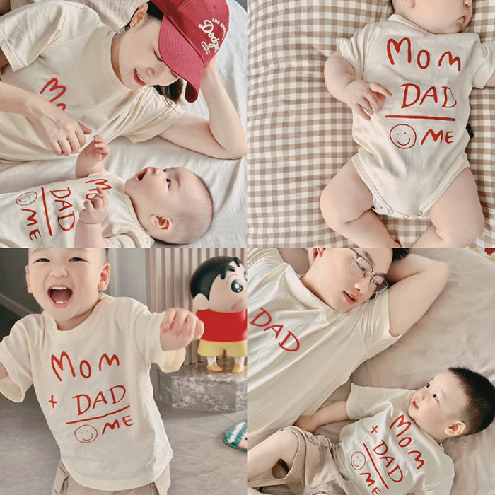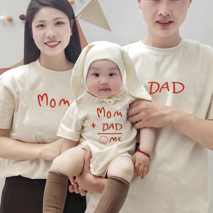 親子裝一家三口母女裝四口高級百日照全家福嬰兒純棉短袖t恤夏季