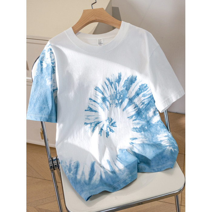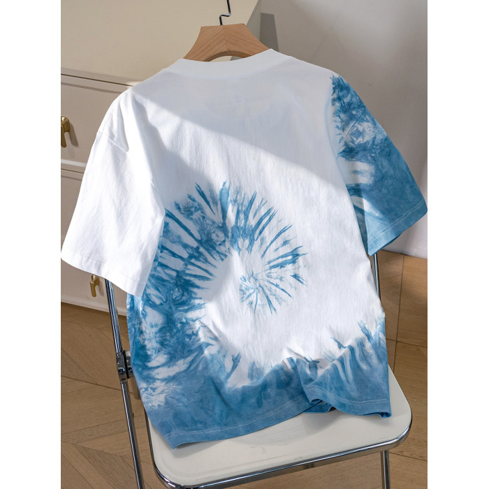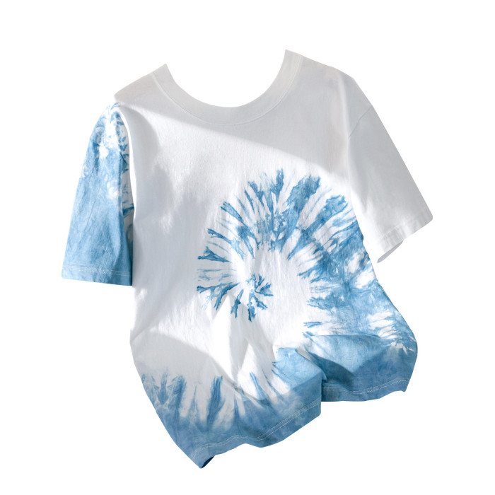 新款大理手工紥染民族風親子裝T恤夏季休閒度假女童藍染T恤男女