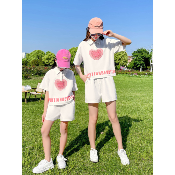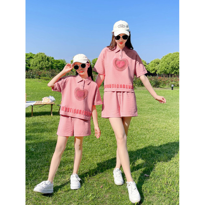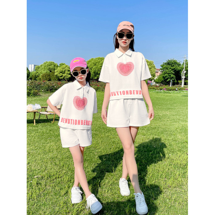 女童運動套裝夏款2025新款時髦母女親子裝中大童短袖polo衫兩件套