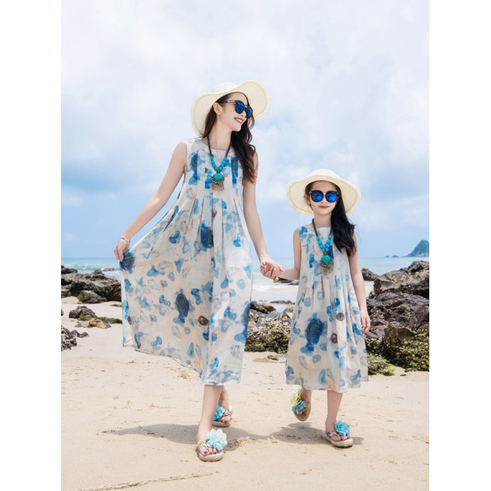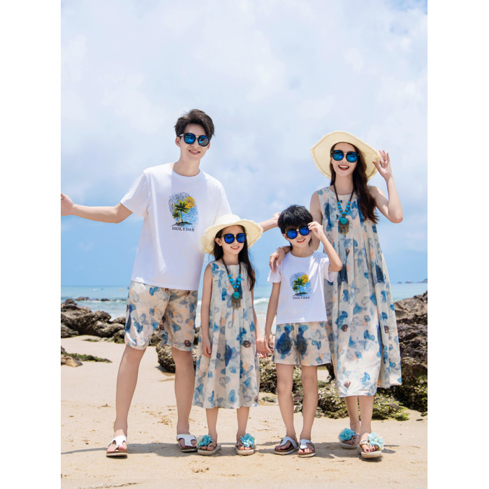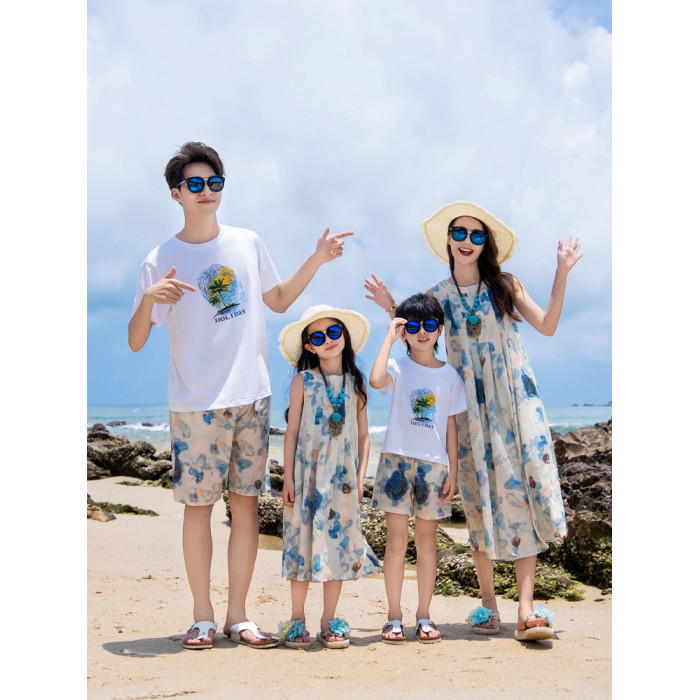 親子裝夏裝全家裝母女裝三亞海邊一家三口四口沙灘裝寬松旅遊度假