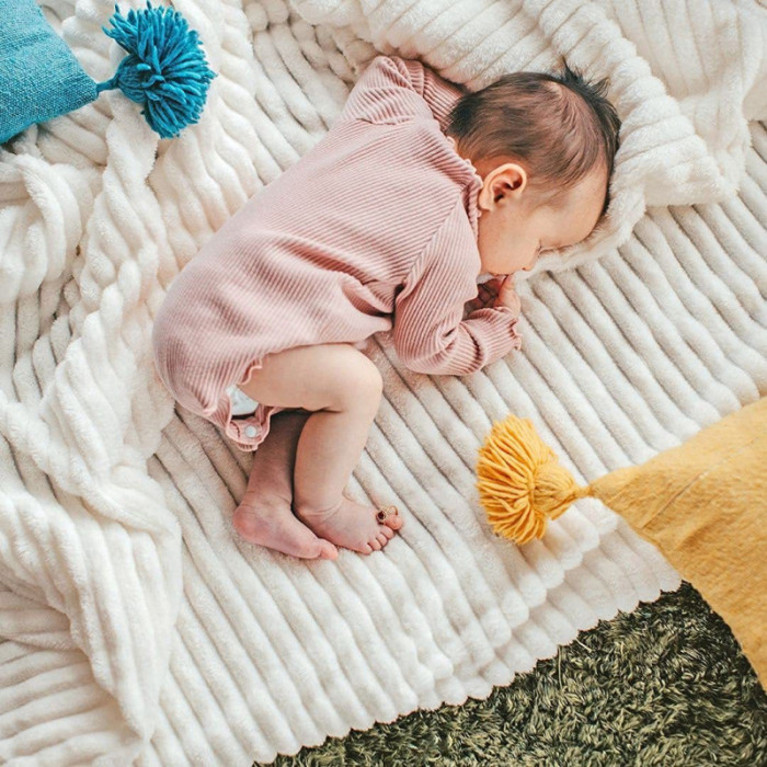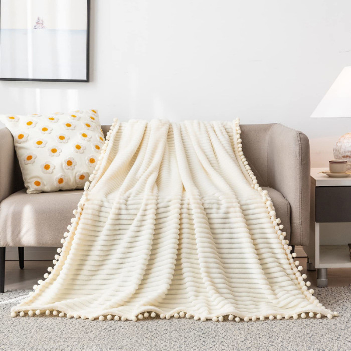 加厚純色輕奢毛毯臥室辦公室午睡網紅條紋沙發毯ins床上蓋毯