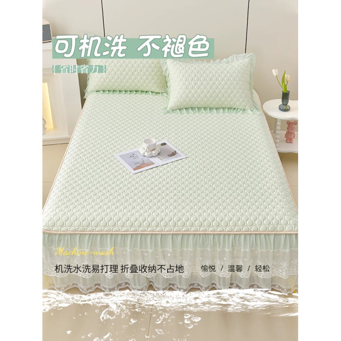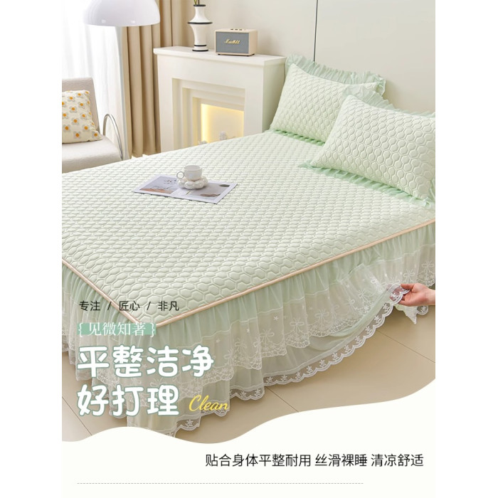 唯美-青檸綠【床裙款+同款枕套】【涼感面料 吸溼排汗】