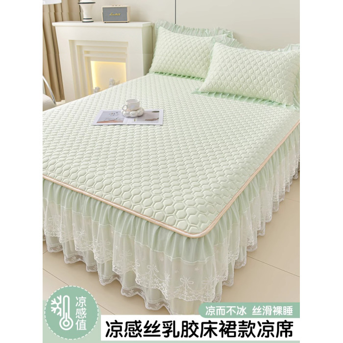 高級夏季涼感冰絲乳膠涼蓆2025新款床裙款公主風軟蓆學生宿舍單人