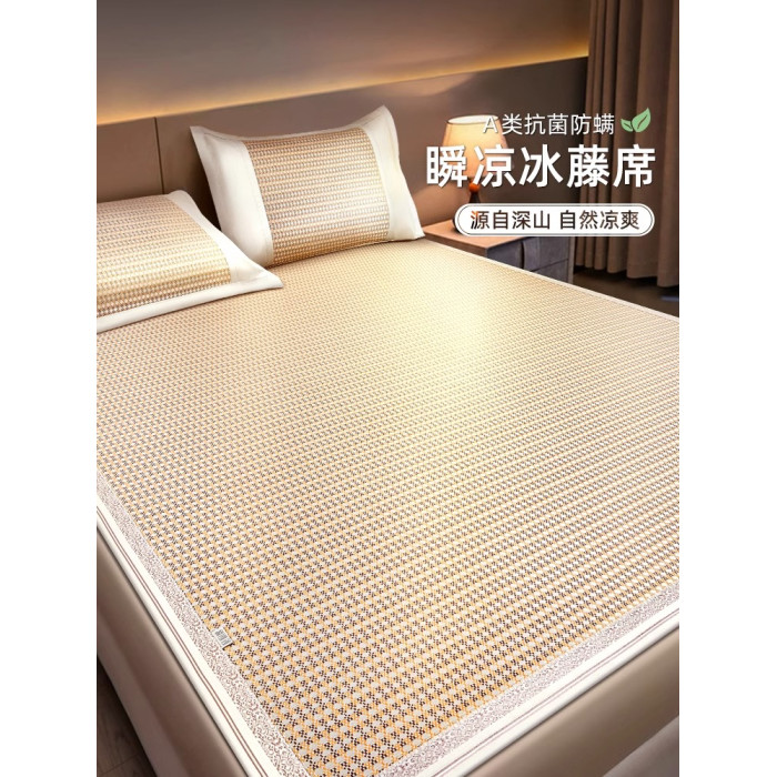 夏天冰絲涼蓆2025新款家用藤蓆竹蓆床笠款蓆子a類母嬰級軟蓆夏季