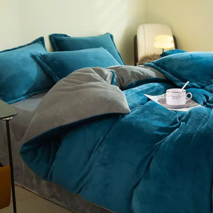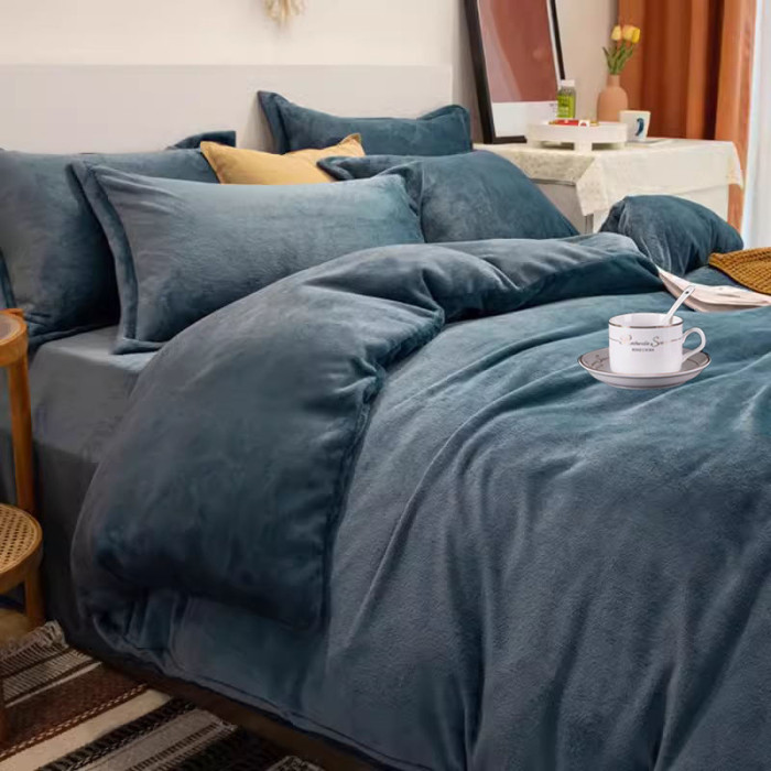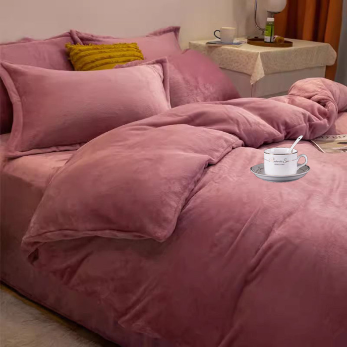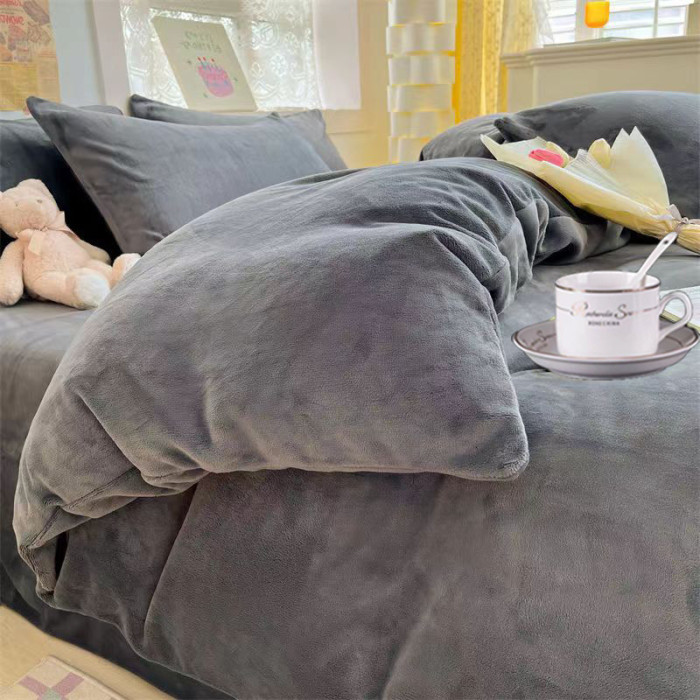 四件套牛奶絨冬季法萊絨法蘭絨雙面加絨被套床單三件套加厚珊瑚絨