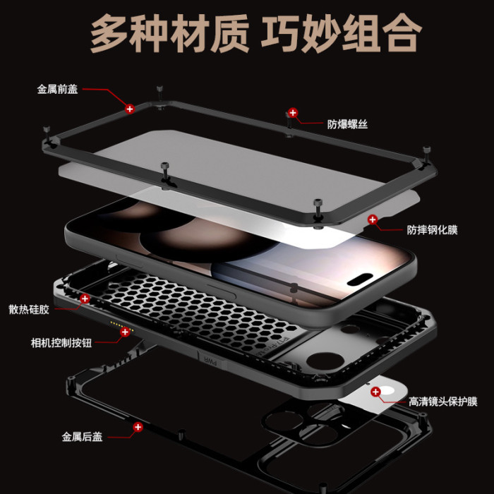 適用蘋果17手機殼金屬坦克三防iPhone17ProMax密封防摔防塵保護