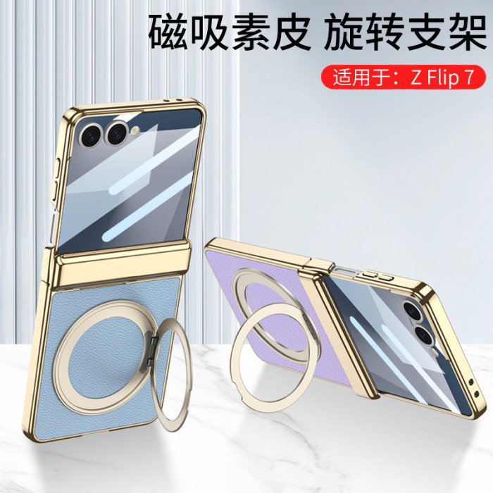 適用三星在flip7素皮折曡手機殼高級感旋轉磁吸支架防摔gkk保護套