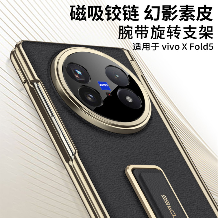 適用VIVOxfold5手機殼精孔磁吸鉸鏈摺疊螢幕電鍍素皮一字旋轉支架殼