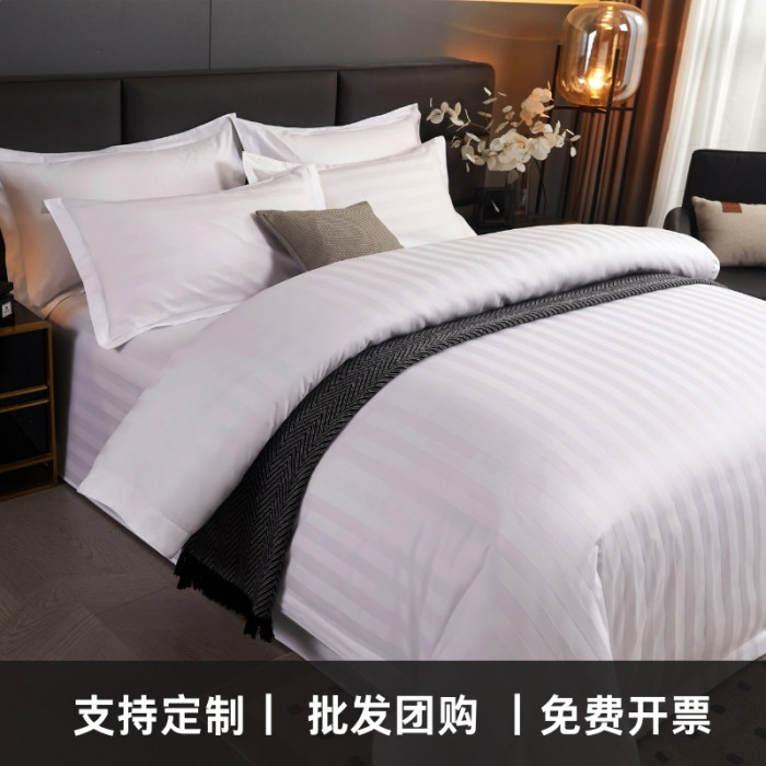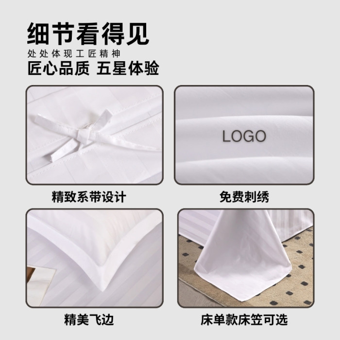酒店床上用品四件套民宿白色床單被套三件套床笠賓館被子整套