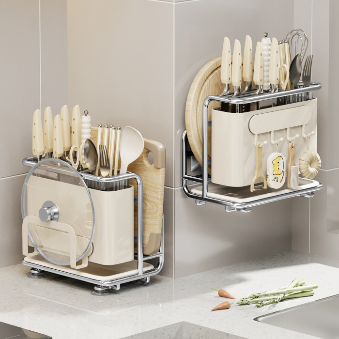 刀架砧板一體架不鏽鋼廚房置物架多功能磁吸筷子砧板架刀具收納架