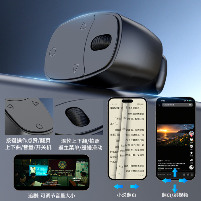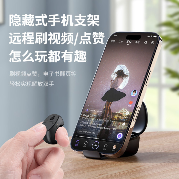 充電倉支架滾輪指環手機遙控器翻頁刷影片遠程拍照藍牙懶人遙控器