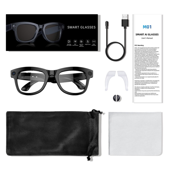 包裝清單 | 智能眼鏡、磁吸充電線、說明書、眼鏡布、耳鉤,鼻托 |