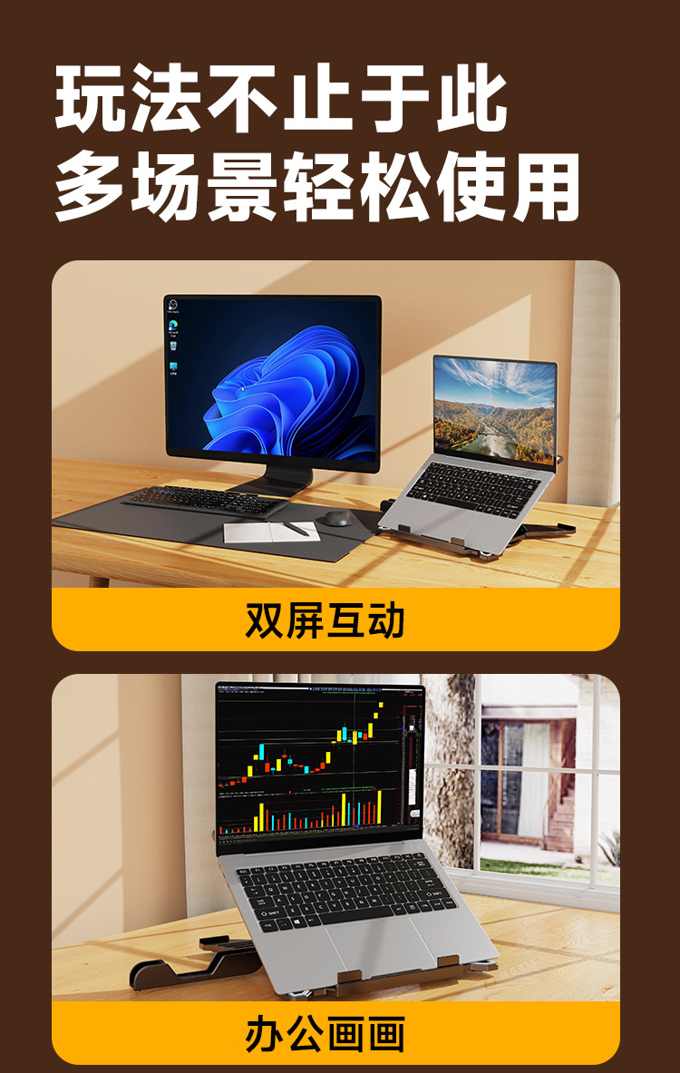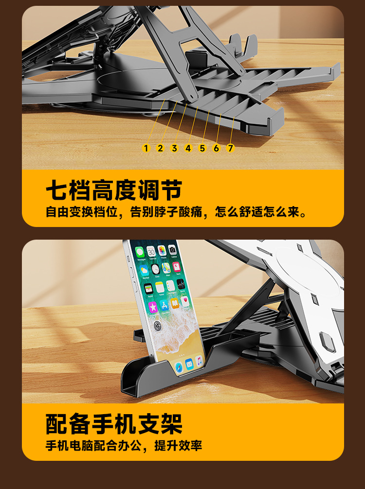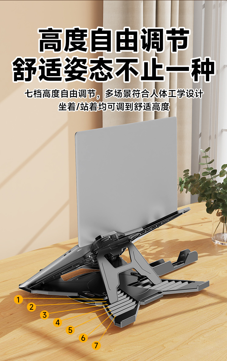 筆記型電腦平板支架7檔高度調節穩固不晃可折曡遊戯辦公專用支架