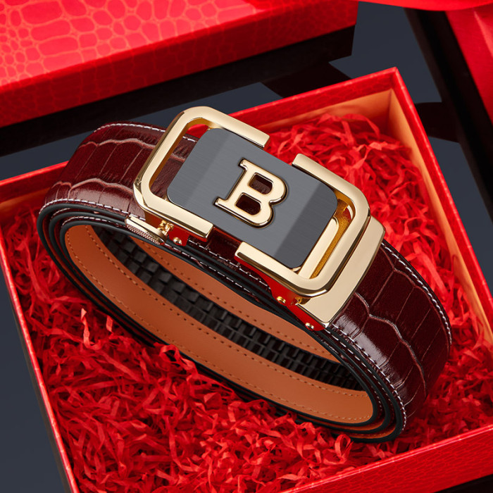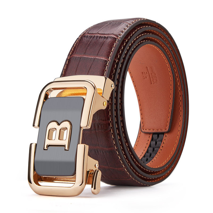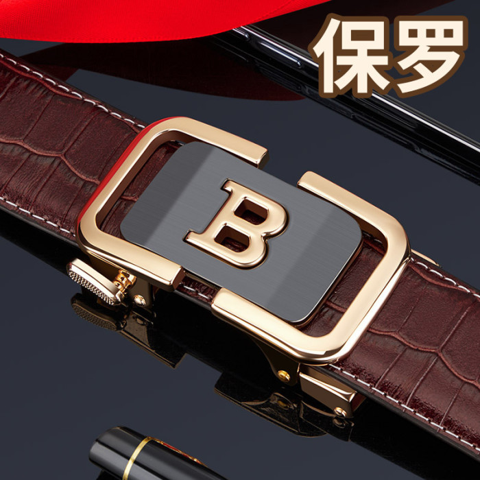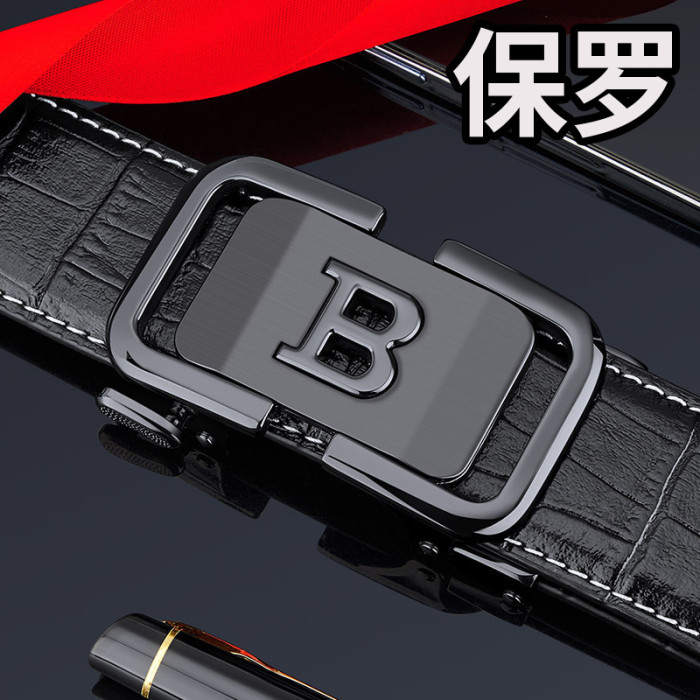 英皇保羅皮帶男士真皮高級感自動釦腰帶男士個性字母皮帶合金