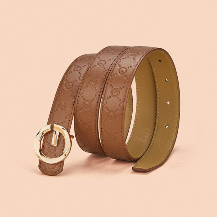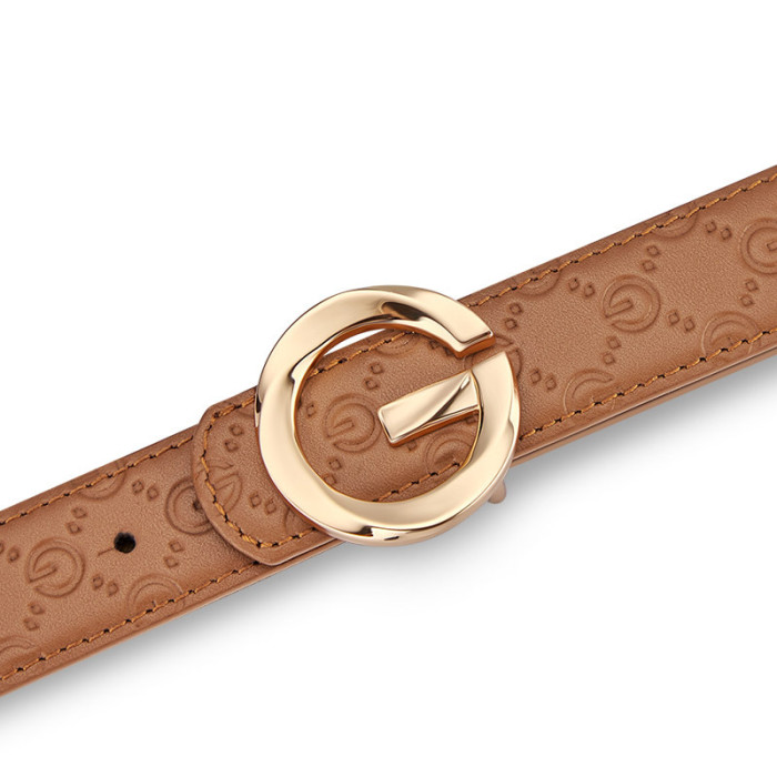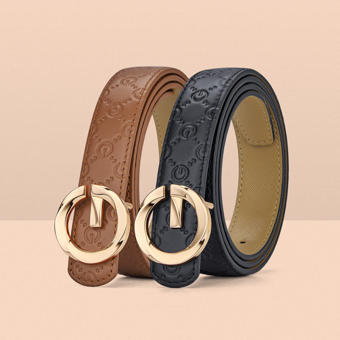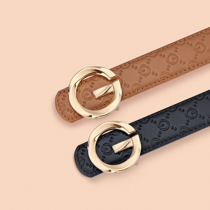 英皇保羅皮帶真皮女頭層牛皮簡約平滑釦女士皮帶百搭牛仔腰帶