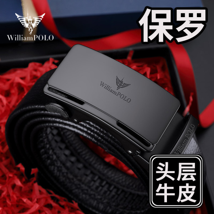英皇保羅皮帶男士真皮高檔自動釦頭層牛皮腰帶男款商務皮帶男
