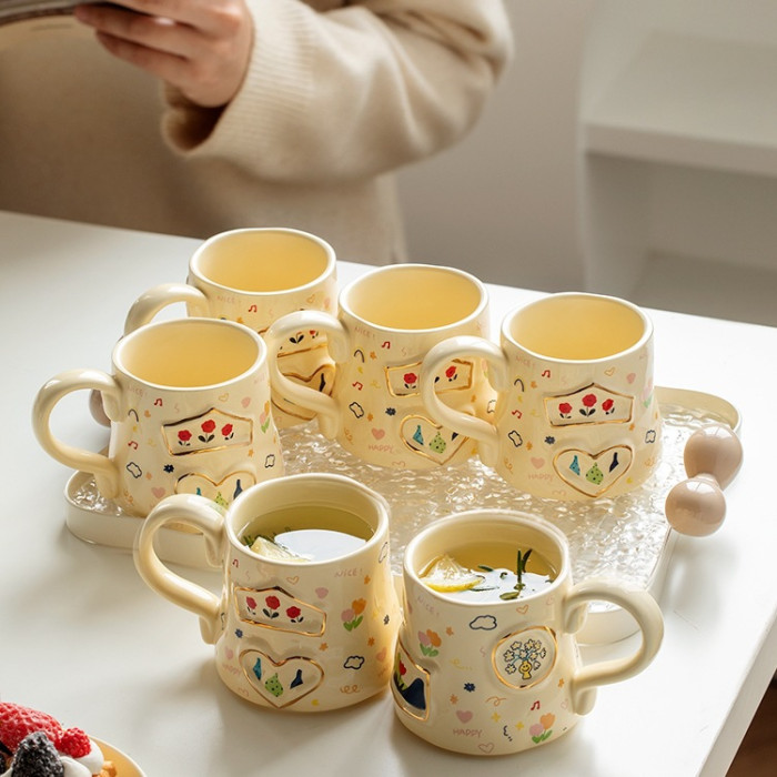 嬭黃漫框水盃套裝【6盃+1個嬭白托磐】