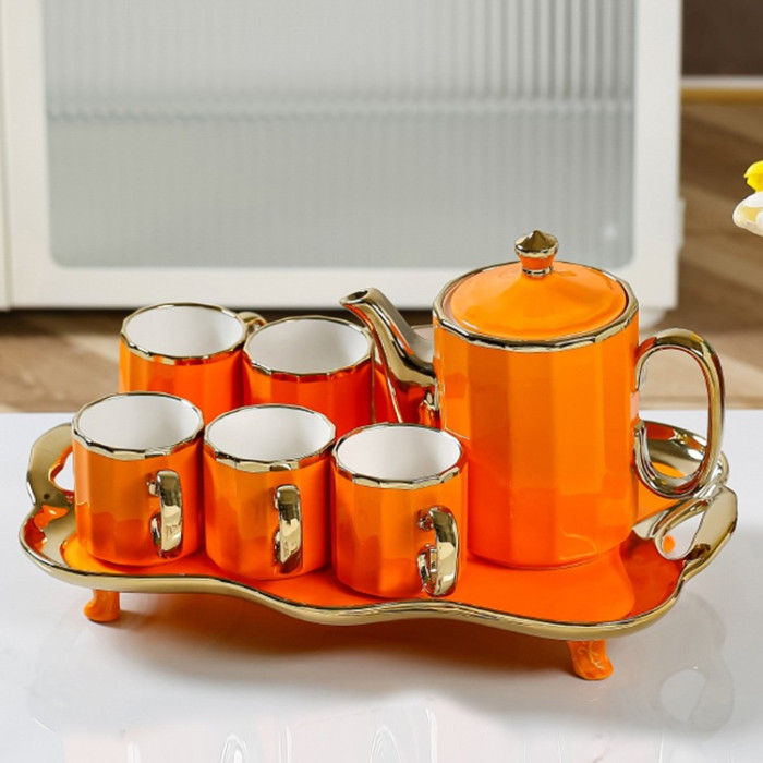 橙色桶型8件套荷花高腳托磐 禮盒裝