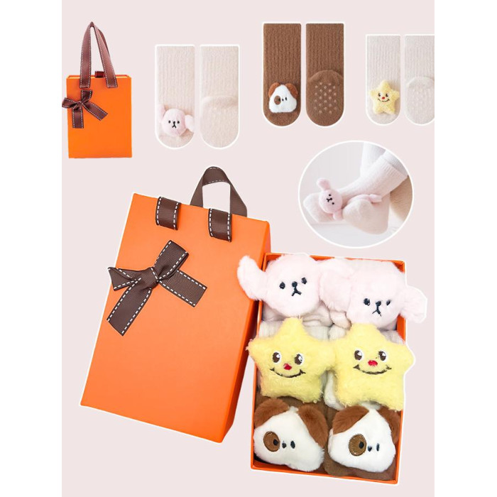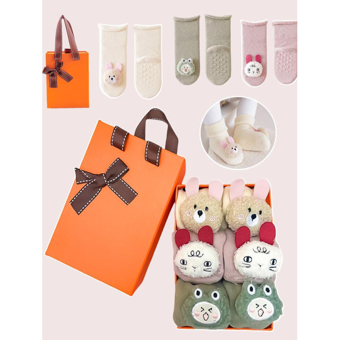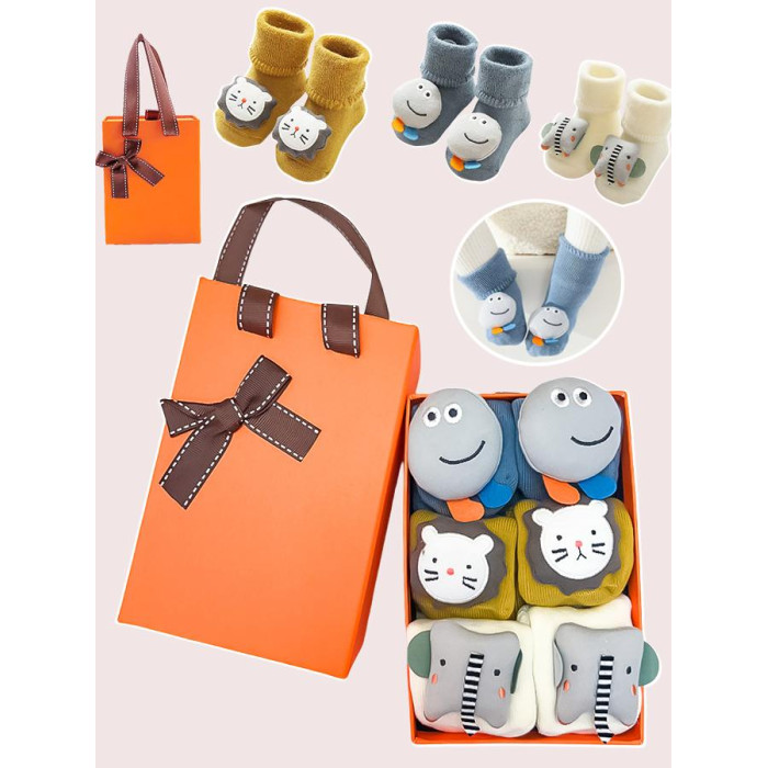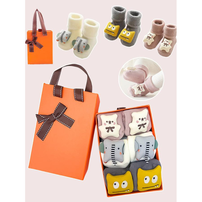 新生兒用品高檔嬰兒禮盒寶寶襪子口水巾秋冬純棉學步襪滿月見面禮