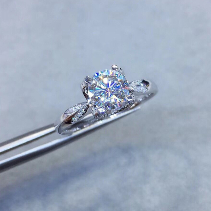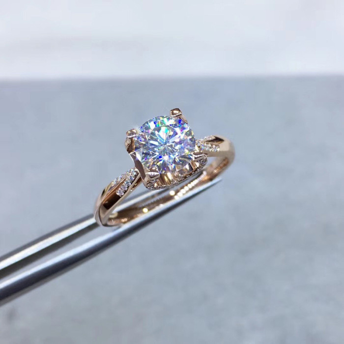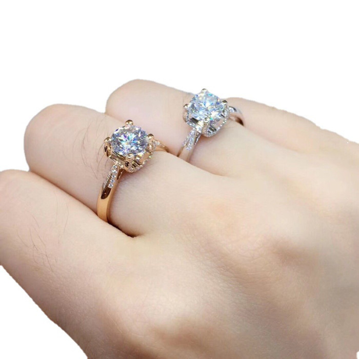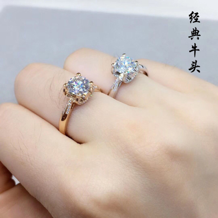 燕尾牛頭美國時尚莫桑石鑽戒莫桑鑽鑲嵌18K金結婚求婚戒指女戒潮