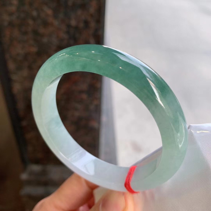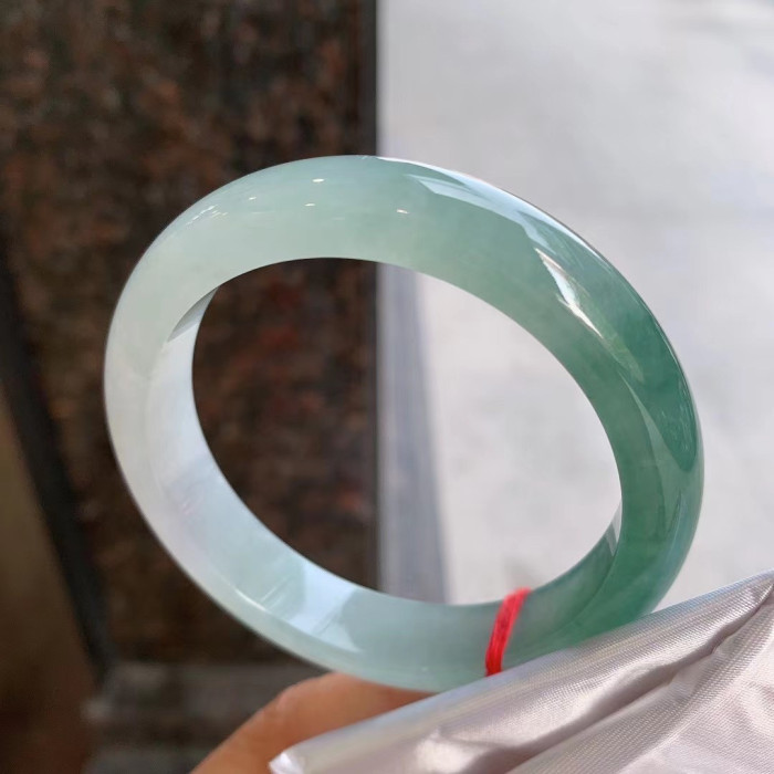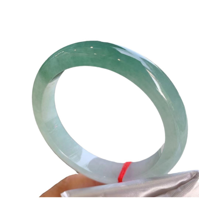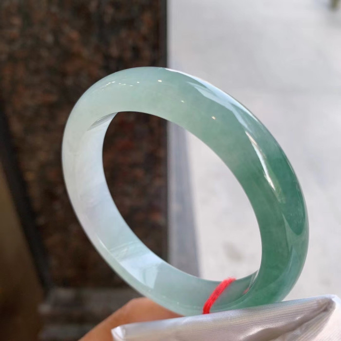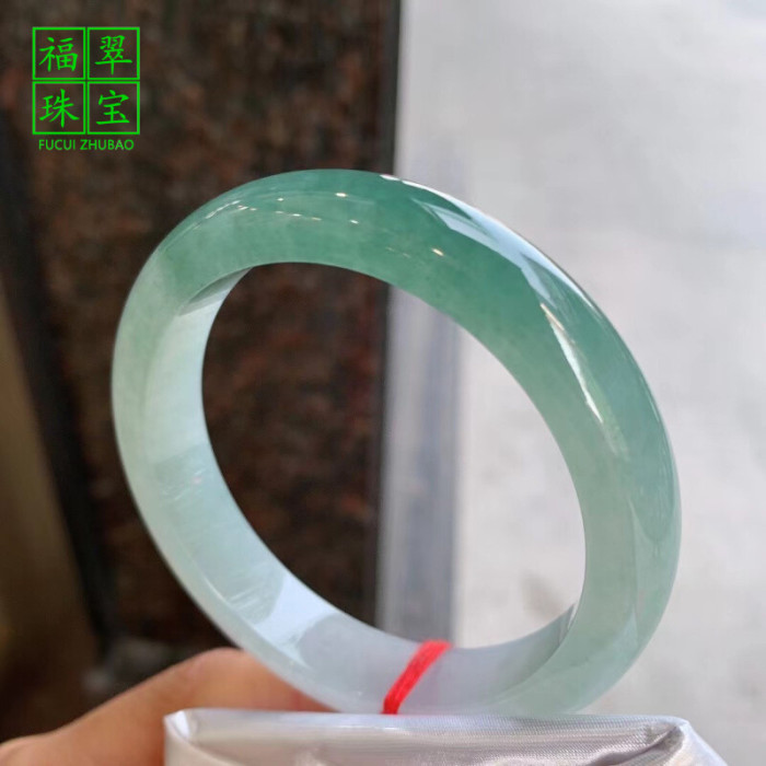 緬甸老坑翡翠冰種圓條手鐲玉鐲子晴水油青飄花福鐲玉石鐲子少女款