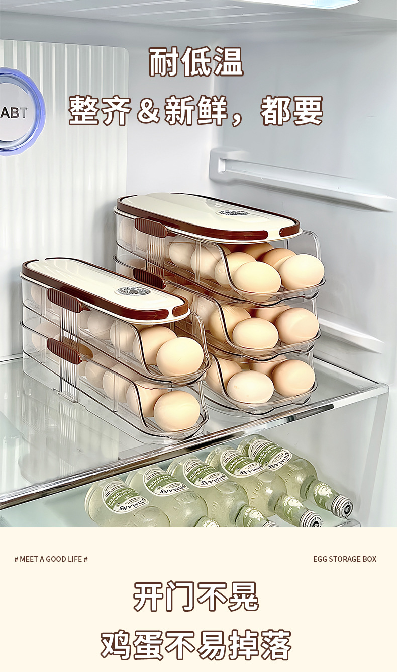 滾動雞蛋收納盒廚房多層創意斜口冰箱側門專用自動補位蛋托保鮮盒
