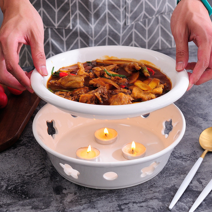 新款陶瓷乾鍋明爐保溫套裝酒店紅燒肉魚頭專用家用蠟燭加熱盤子煲
