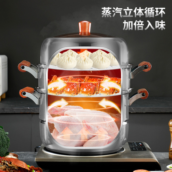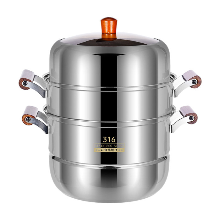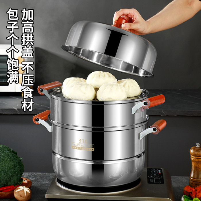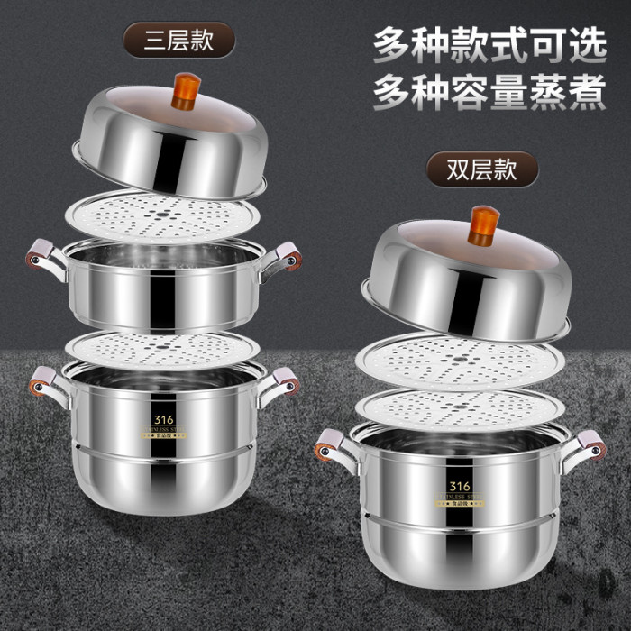 316不鏽鋼食品級蒸鍋家用食品級304湯鍋巨厚饅頭三四層電磁爐通用