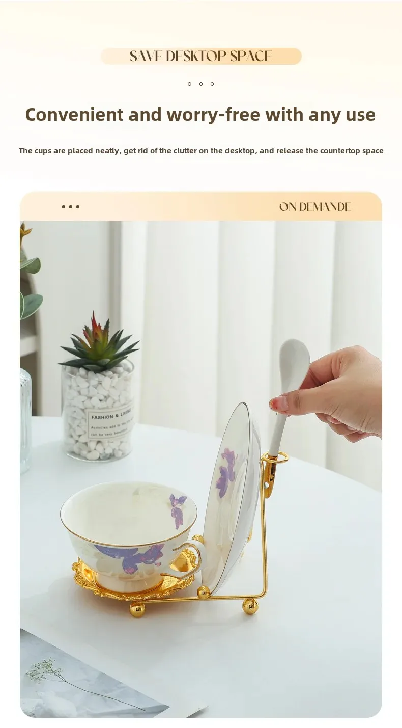 • European Style Design : The New Small Luxury Cup and Saucer Storage Rack boasts a European style design, adding a touch of elegance to any home decor.