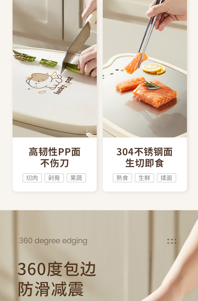 304不鏽鋼菜板家用防黴抗菌切菜板廚房專用塑膠砧板水果雙面案板