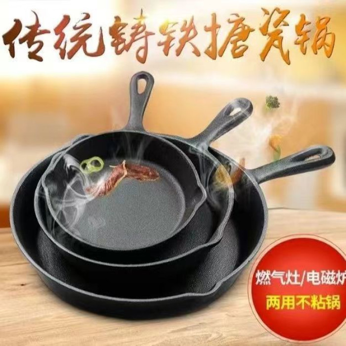 鑄鐵平底三件套加厚煎鍋迷你烙餅煎蛋生鐵牛排無塗層不沾鍋電磁爐