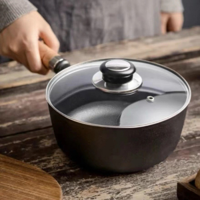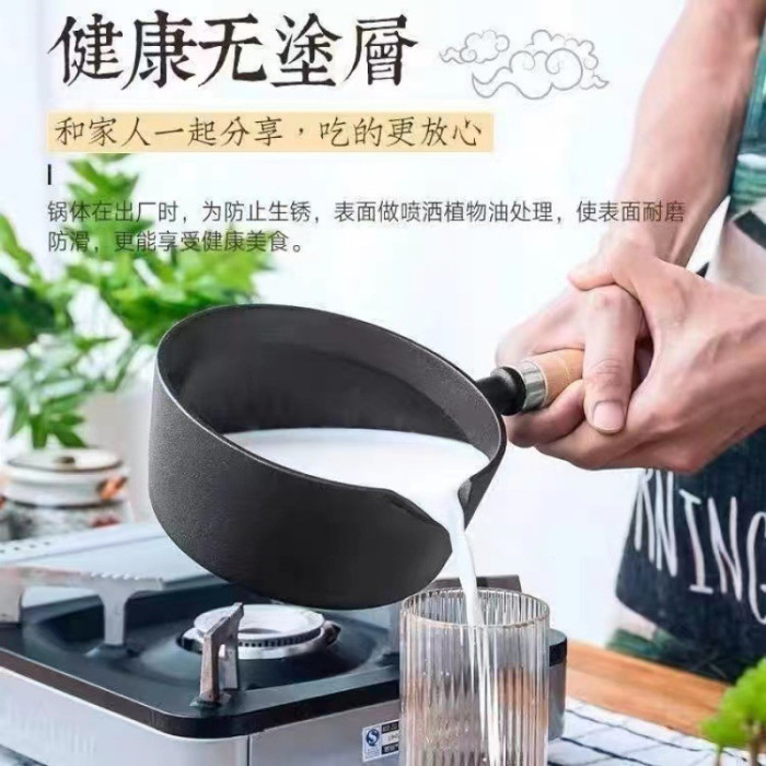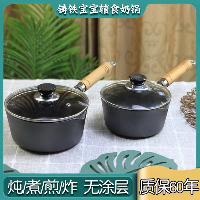 鑄鐵奶鍋寶寶輔食鍋補鐵湯鍋嬰兒熱奶鍋生鐵炸鍋不沾平底鍋電磁爐