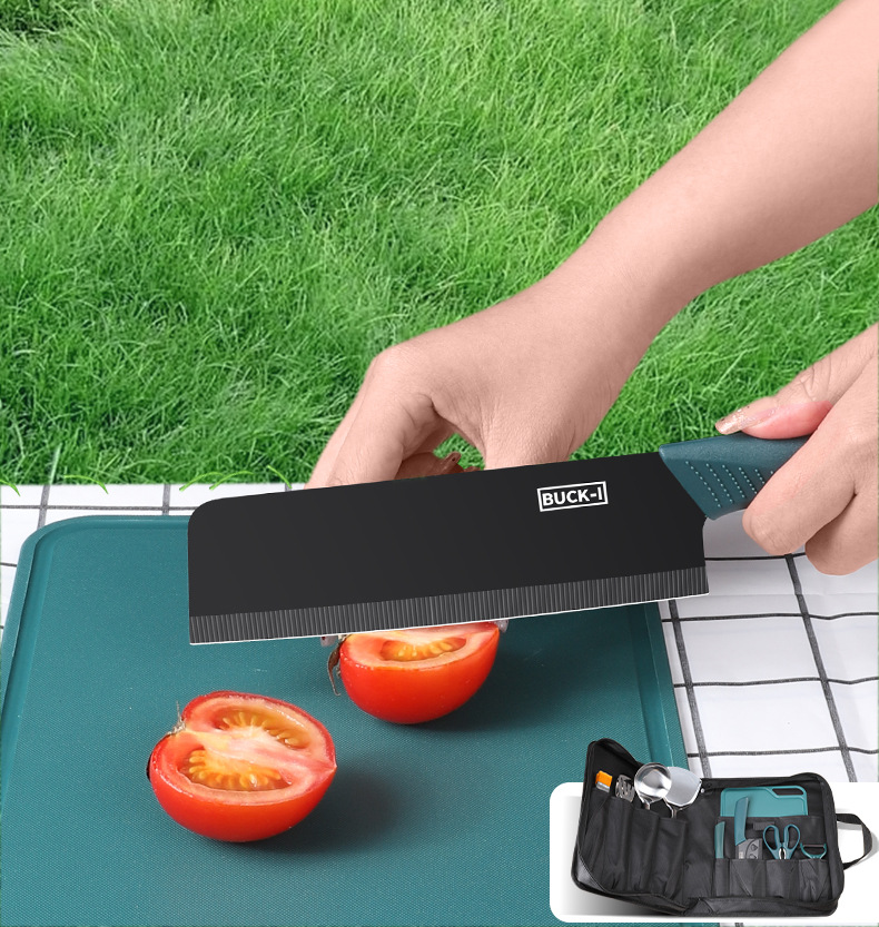 戶外野營炊具刀具可攜式廚具收納包露營遊不鏽鋼鍋鏟切菜板套裝