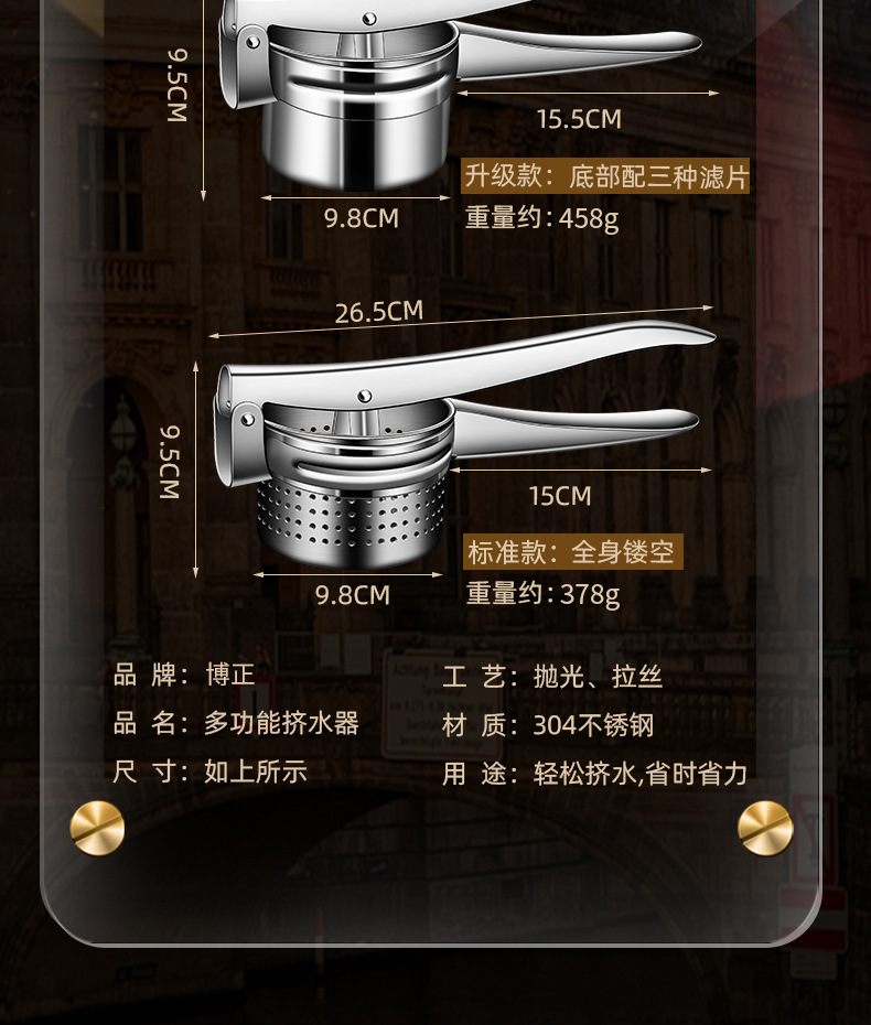 304不鏽鋼手動榨汁器 家用水果檸檬擠水器多功能土豆壓泥器壓蒜器