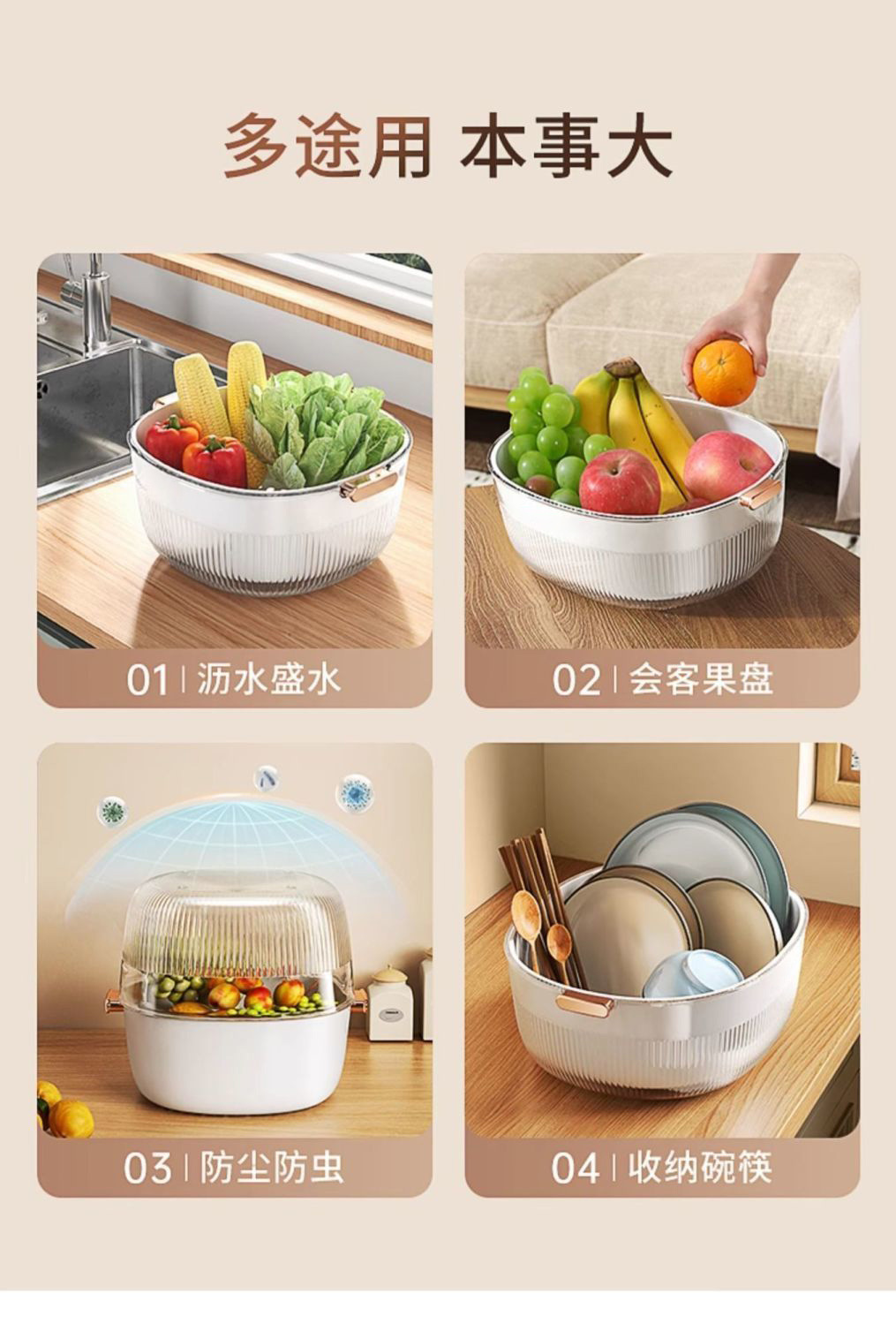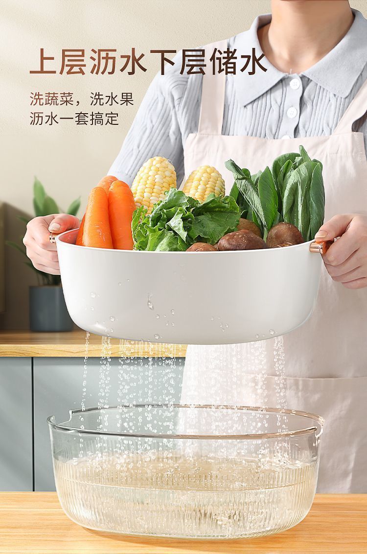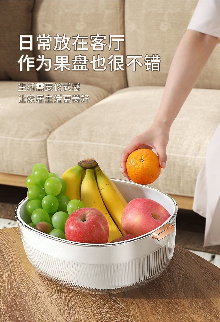 瀝水籃洗菜盆廚房家用雙層客廳洗水果菜籃淘米神器加厚塑膠濾水籃