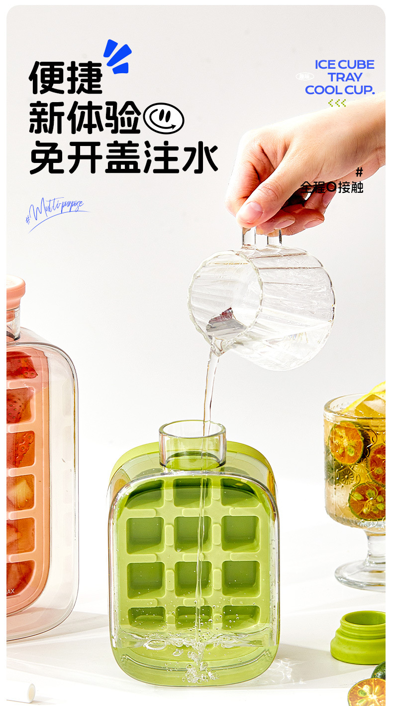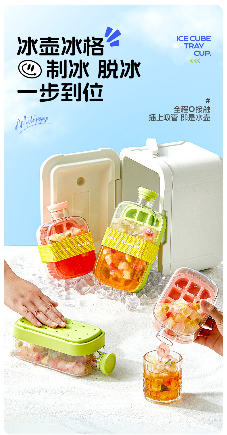 按壓式冰格冰塊模具水壺家用食品級水杯冰箱凍冰塊神器儲冰製冰盒