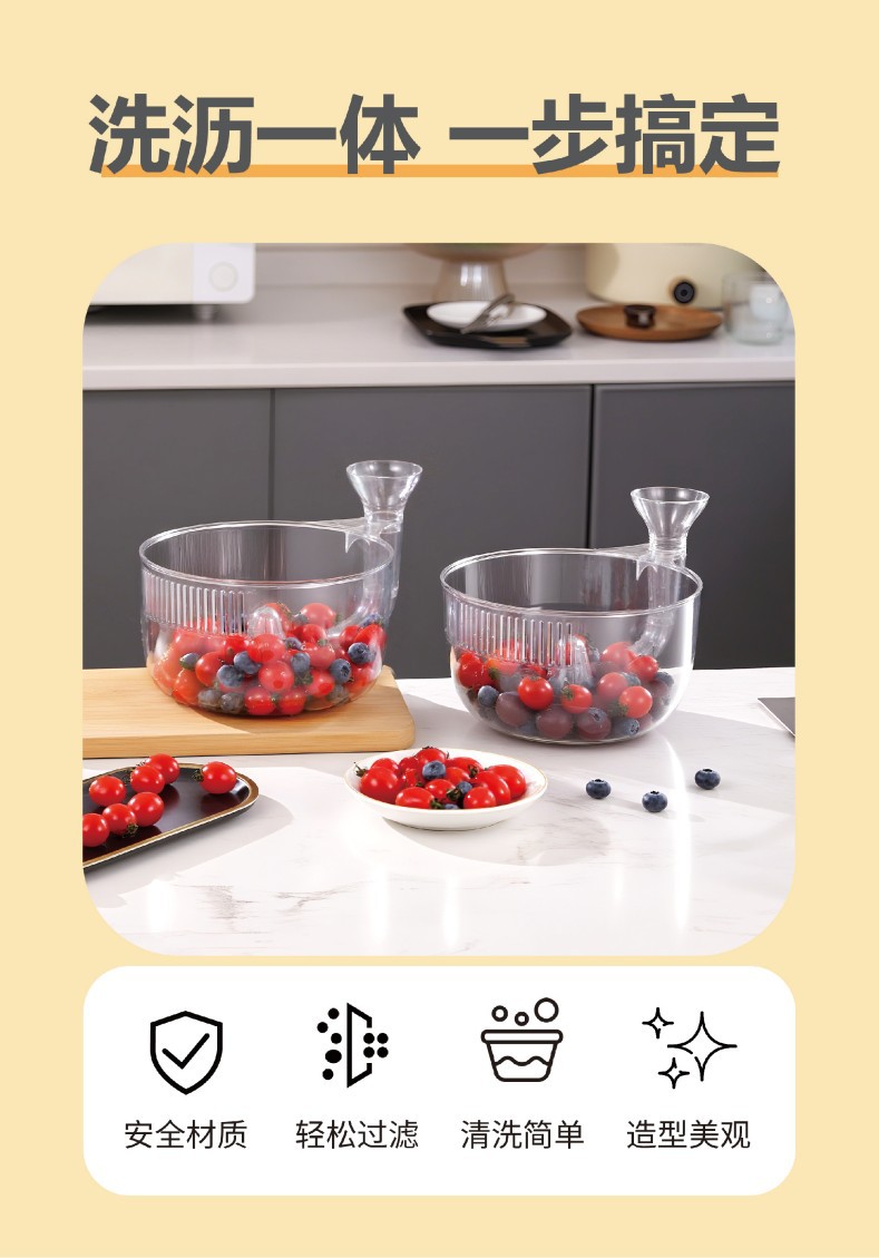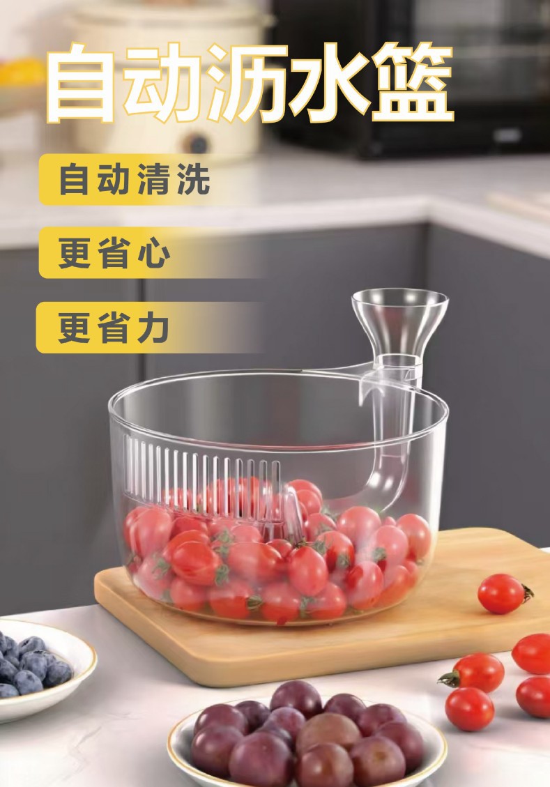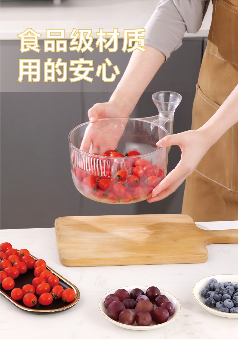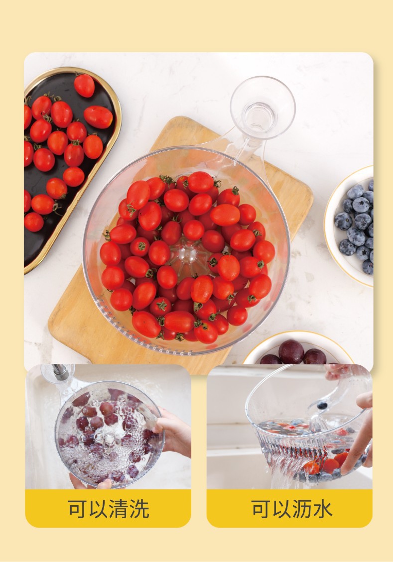 水果自動清洗瀝水籃塑膠透明廚房果蔬漏水盆乾溼分離蝸牛濾水神器
