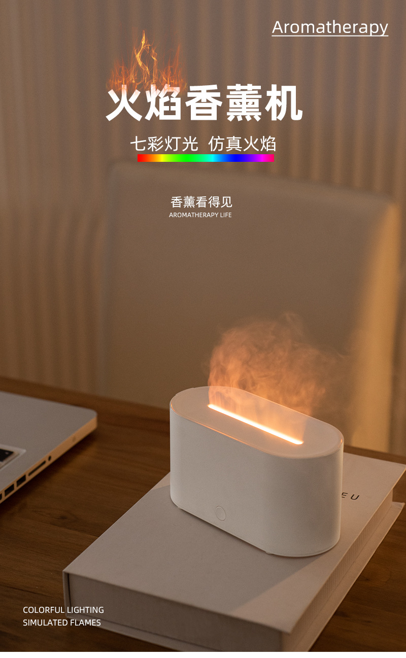 新款火焰香薰機辦公桌面家用臥室精油香薰機香薰氛圍燈仿真火焰
