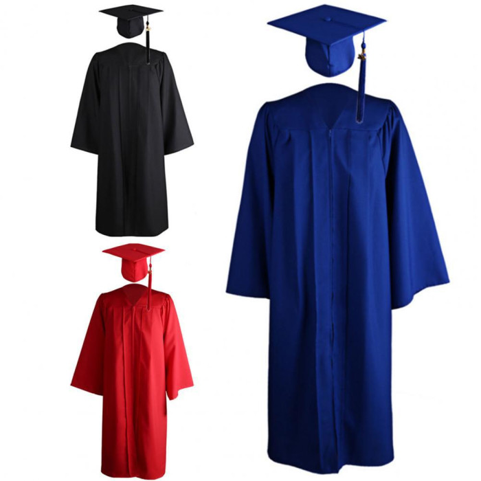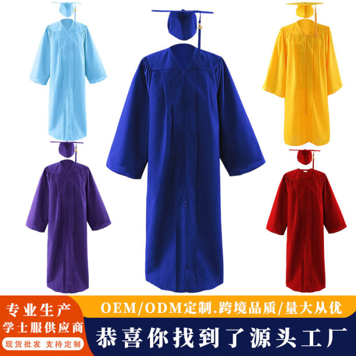 藍色梭織成人學士服學位服套裝大學本科碩士畢業典禮服飾