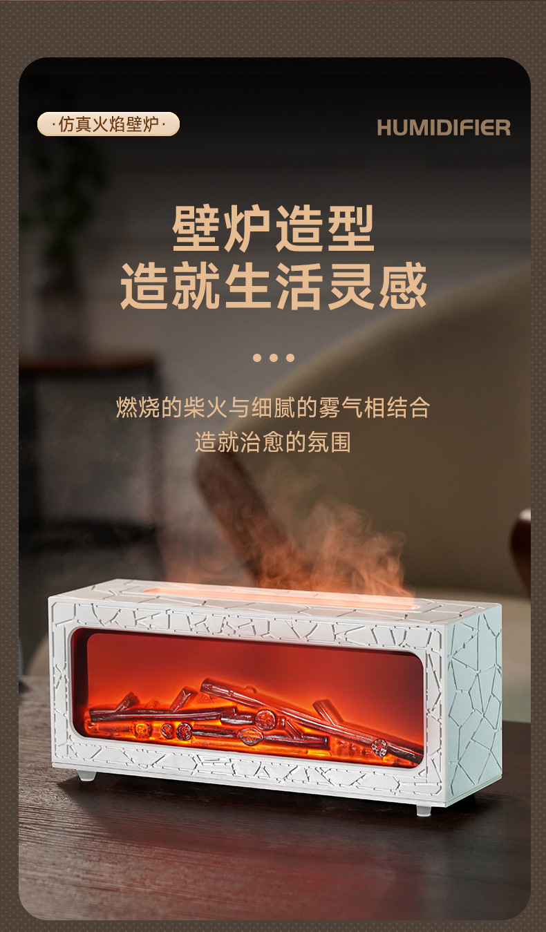 新款桌面炫酷防真壁爐火焰香薰機家用氛圍感超音波篝火加溼器