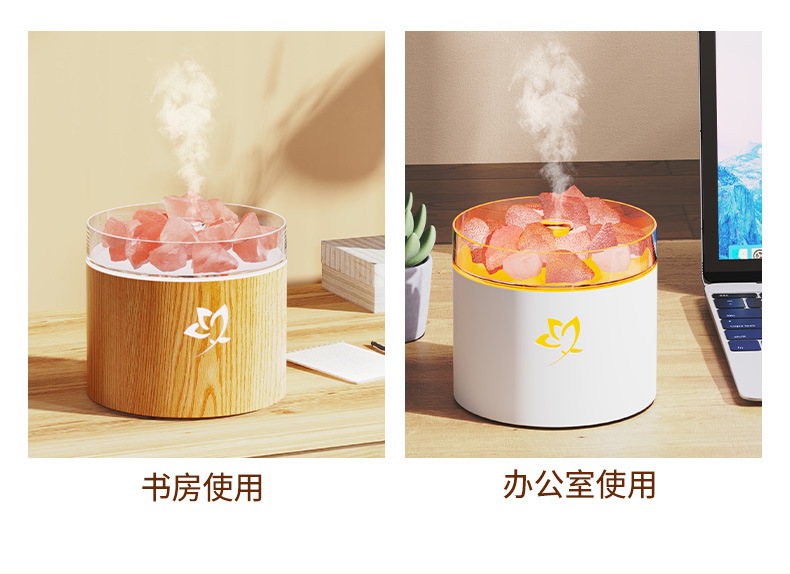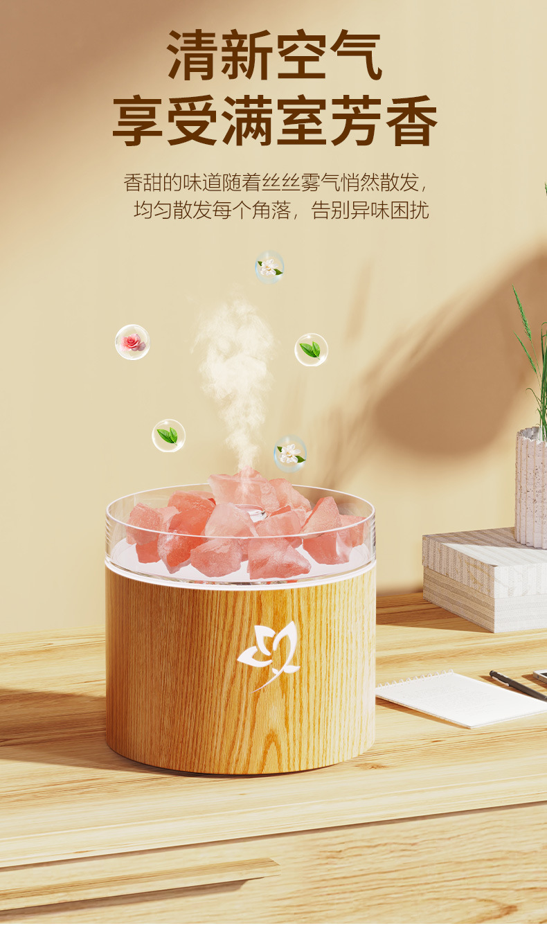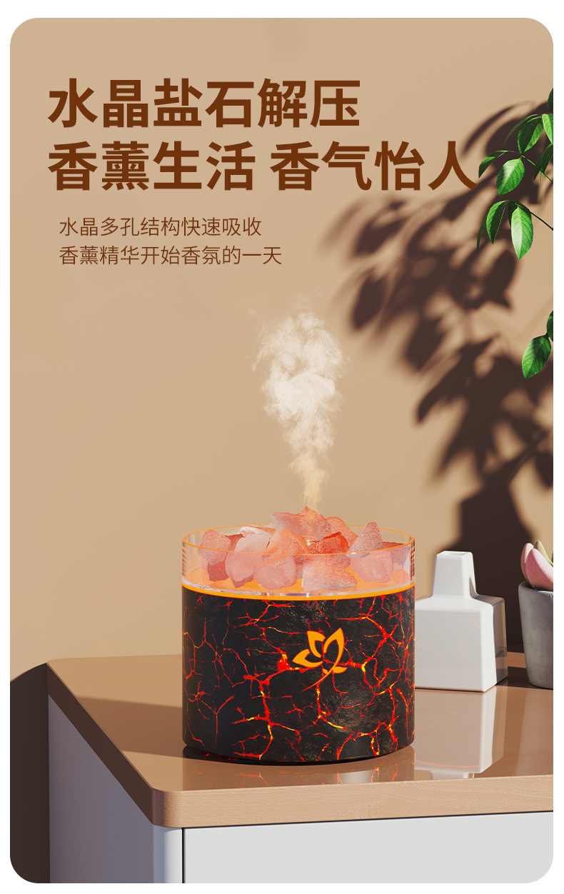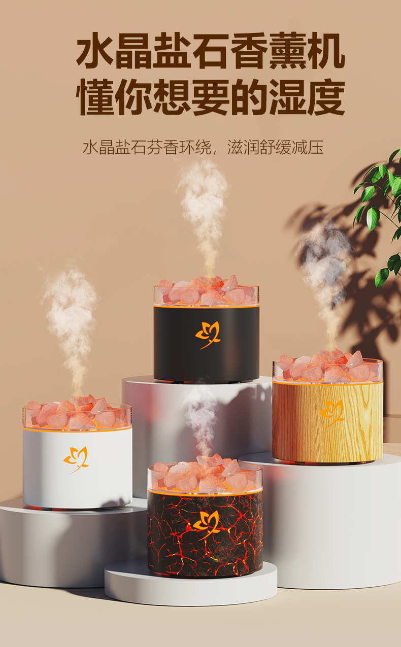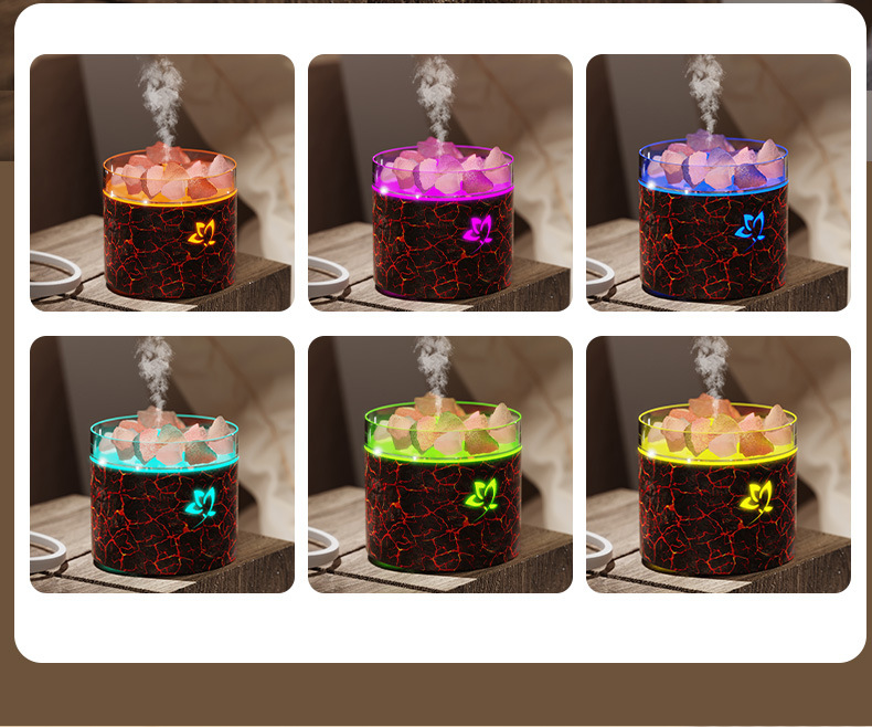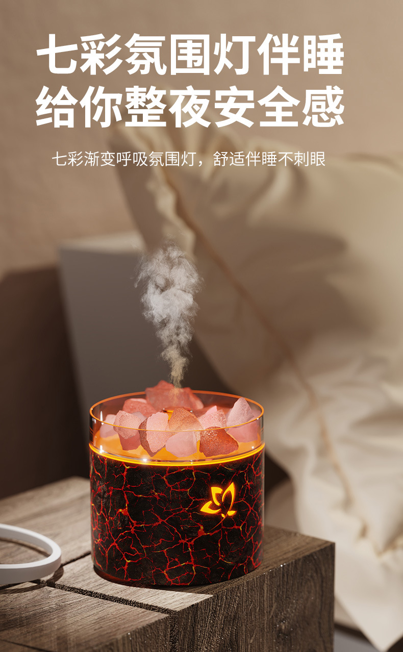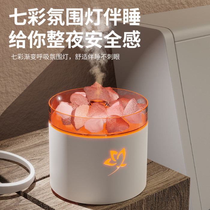 新款超音波香薰機七彩氛圍燈水晶鹽石家用臥室桌面香薰機