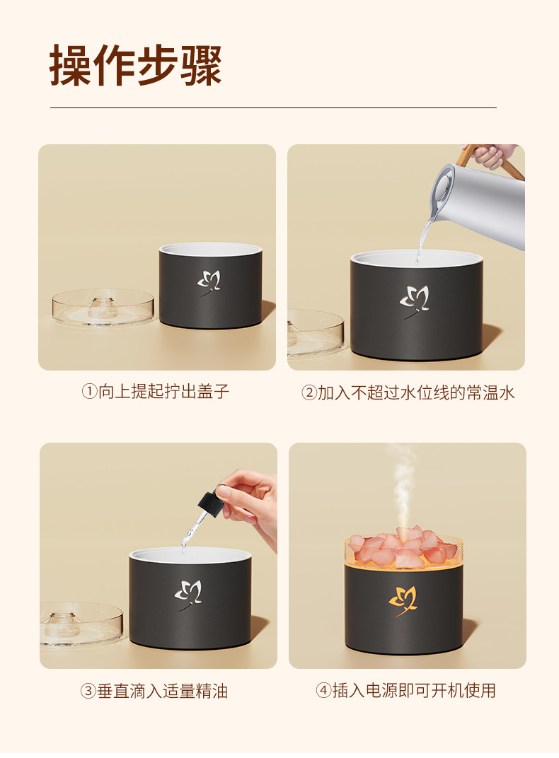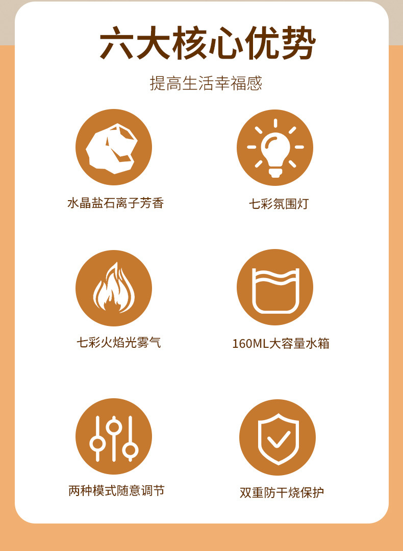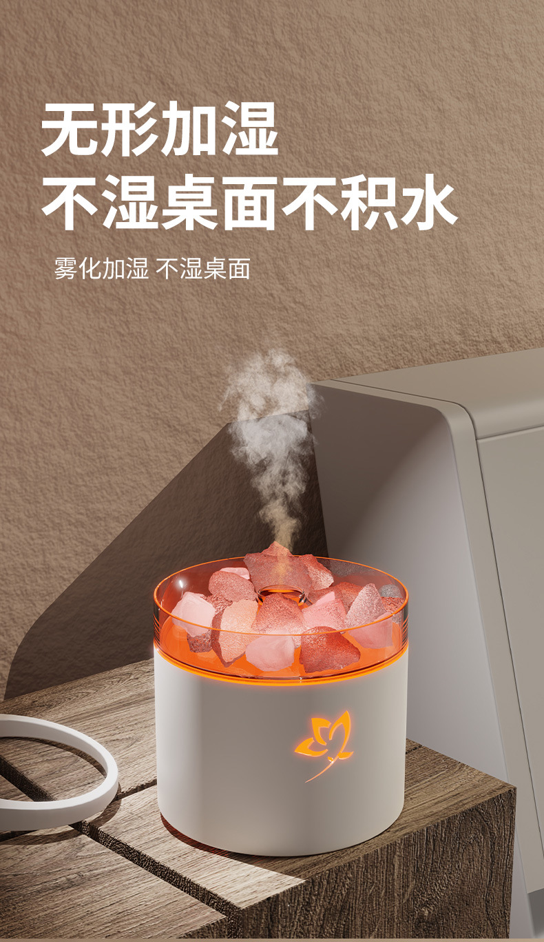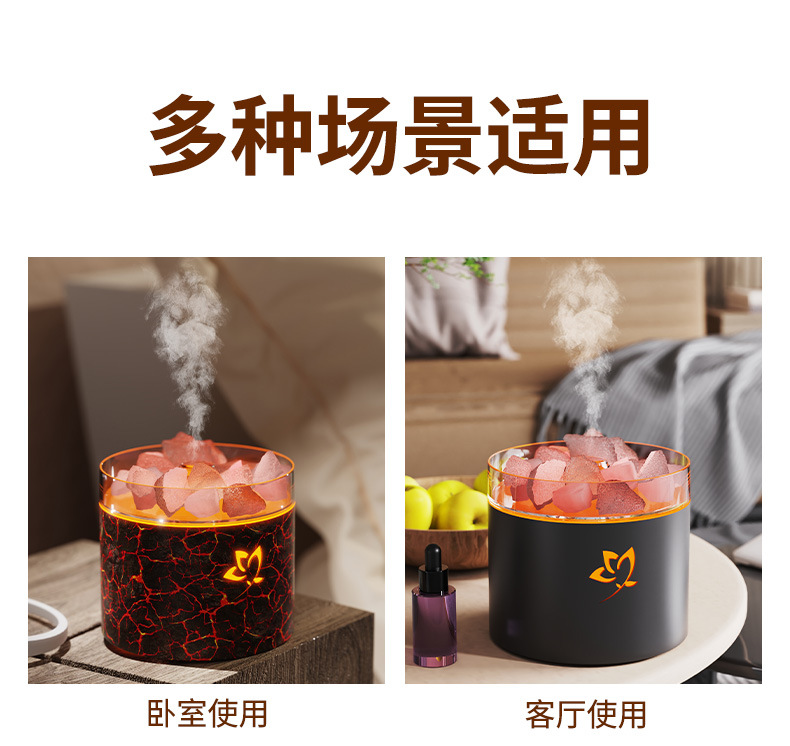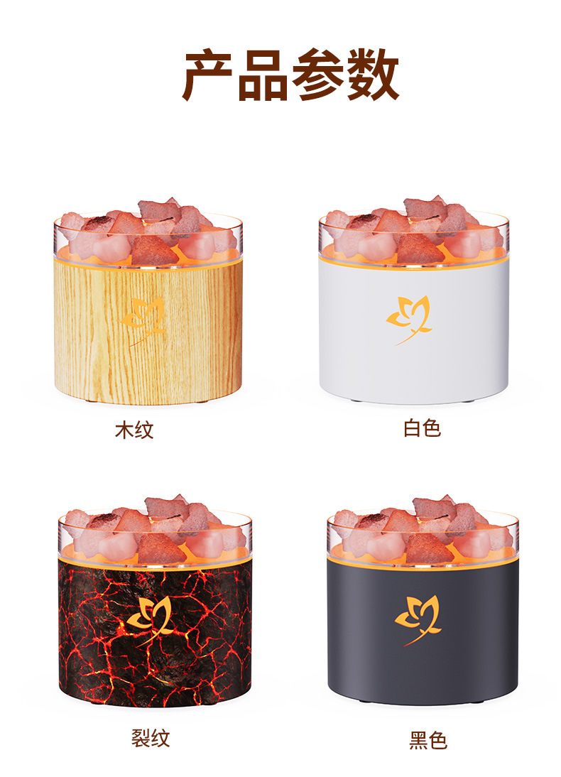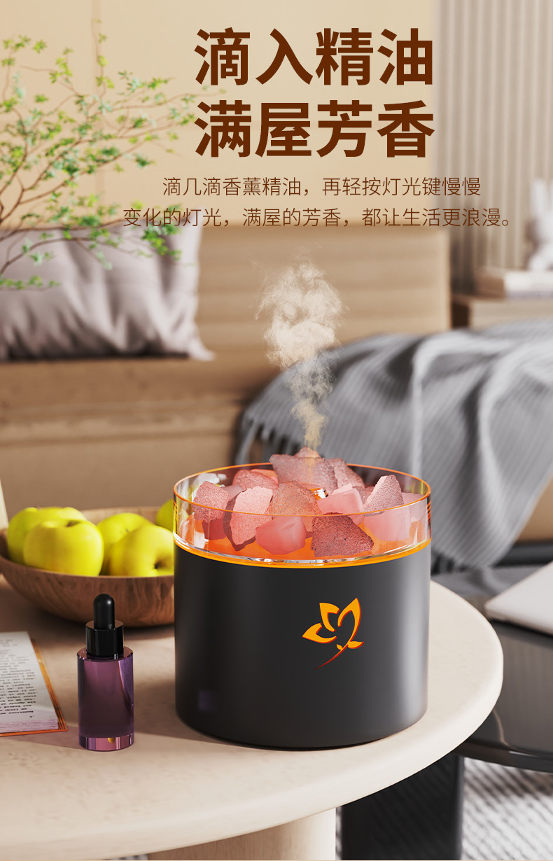 新款超音波香薰機七彩氛圍燈水晶鹽石家用臥室桌面香薰機