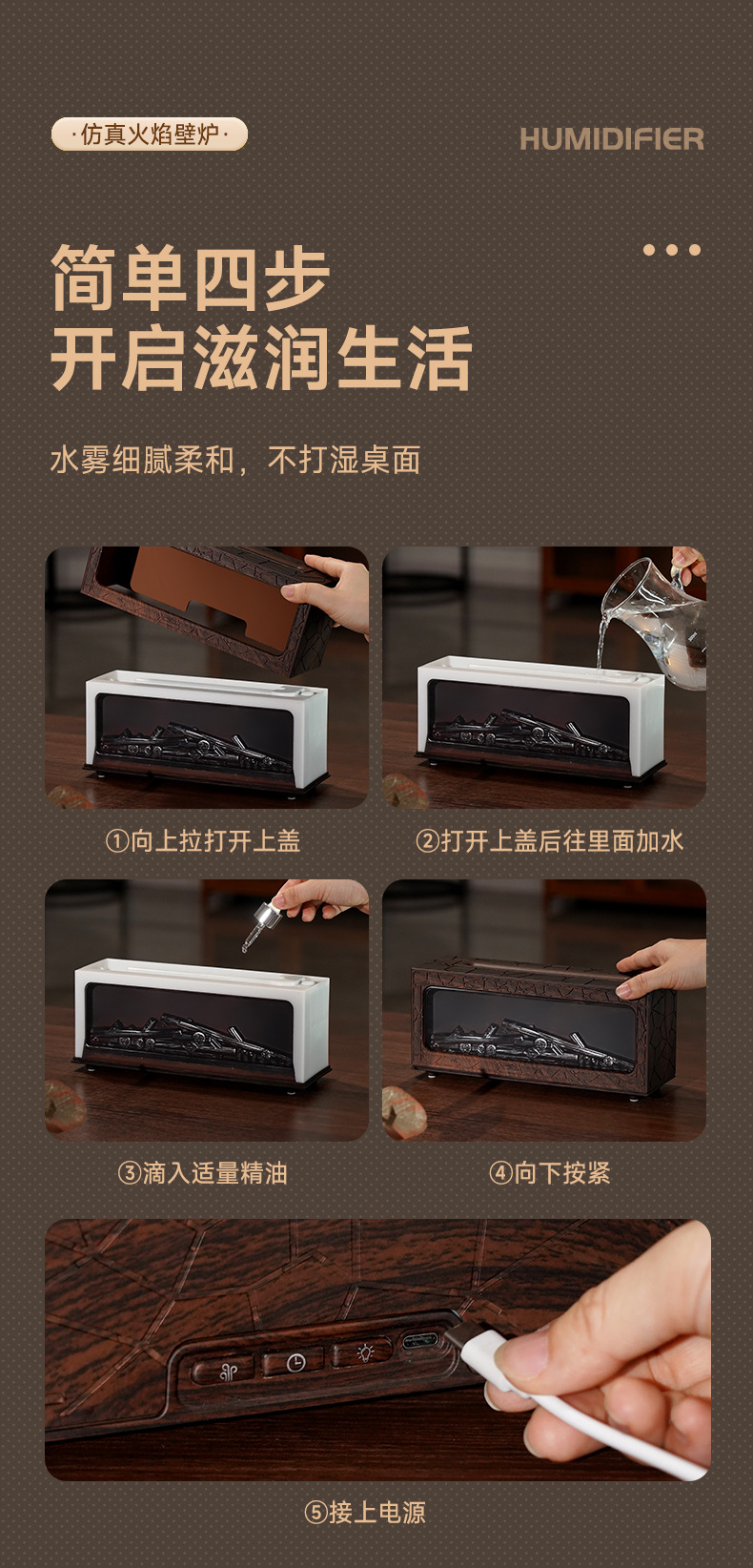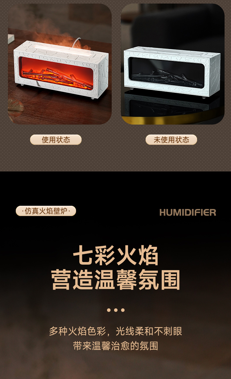 復古壁爐香薰機小型家用香薰機靜音超音波智能遙控仿真火焰香薰機
